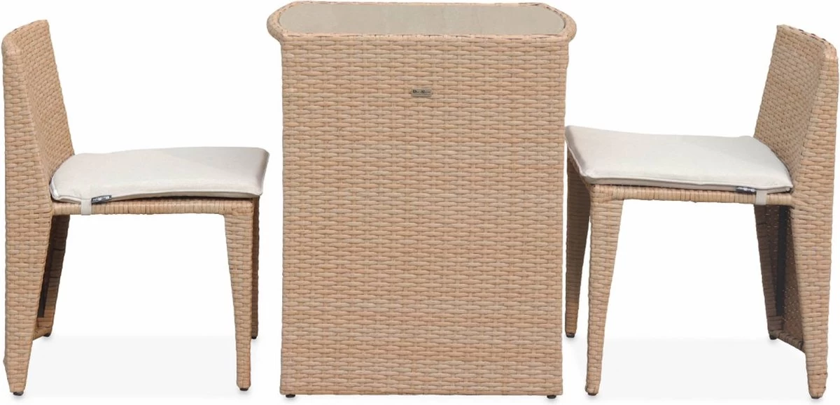 Wicker is een stevige en weerbestendige kunststof. Het is zowel tegen zonnestralen (UV) als tegen slechte weersomstandigheden (regen / sneeuw / zout water) bestand.