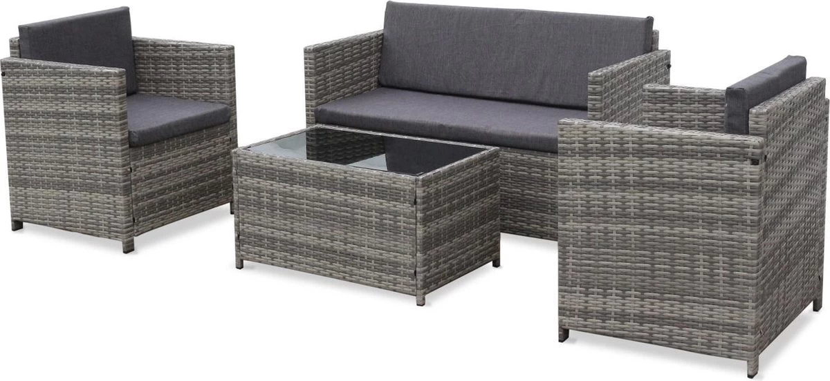 Voor het materiaal is er gebruik gemaakt van harsmateriaal. Harsmateriaal is een ware trend en zeer duurzaam. Dit materiaal lijkt op rotan wat een elegante en moderne uitstraling geeft aan de set. Hierdoor kan de set zowel binnen als buiten geplaatst worden. De kussens zijn stijlvol afgewerkt met een bies.