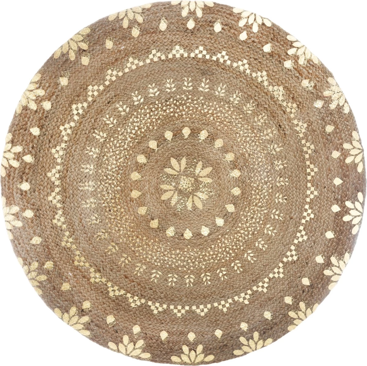 Kleur: naturel Materiaal: gevlochten jute Diameter: 115 cm In een natuurlijke jute toon Sterk, veerkrachtig en duurzaam Aantrekkelijke textuur Handgemaakt Materiaal: Jute: 100%