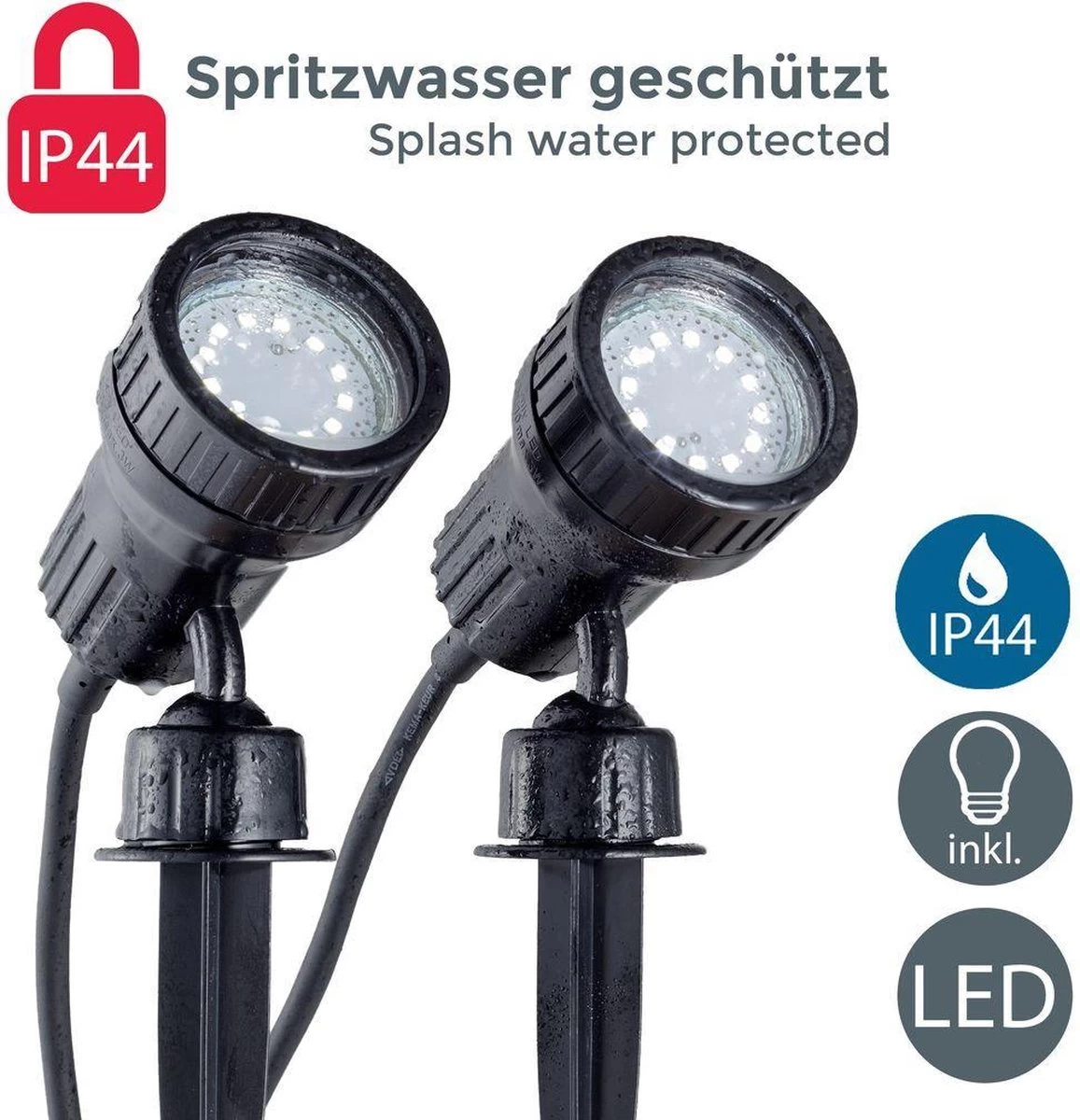 De buitenspots in een set van 2 zijn geschikt voor de verlichting van de tuin. Met de wandhouder kunnen de armaturen worden gebruikt als buitenmuurverlichting om uw terras te verlichten.