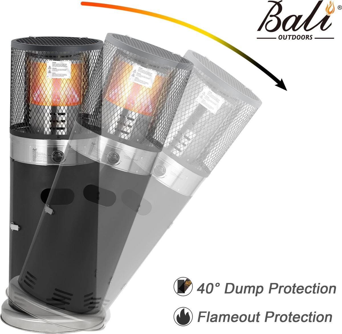 De Balioutdoors lounge terrasverwarmer is volledig gemaakt van edelstaal en is geschikt voor 5 tot 11 kg gasfles (incl. 50cm toevoerleiding en drukregelaar 30mbar) welke in heet onderstel past. Met behulp van het windscherm kan het verwarmingsvermogen tot 7,3kW met een gasverbruik van ca. 531g/u optimaal worden benut. Bovendien is de Balioutdoors lounge terrasverwarmer uitgerust met een omvalbeveiliging. Met de robuuste buitenwielen kan de terrasverwarmer optimaal in de tuin en op terrassen worden geplaatst. De Balioutdoors Lounge terrasverwarmer is eenvoudig te starten met de piëzo ontsteking.