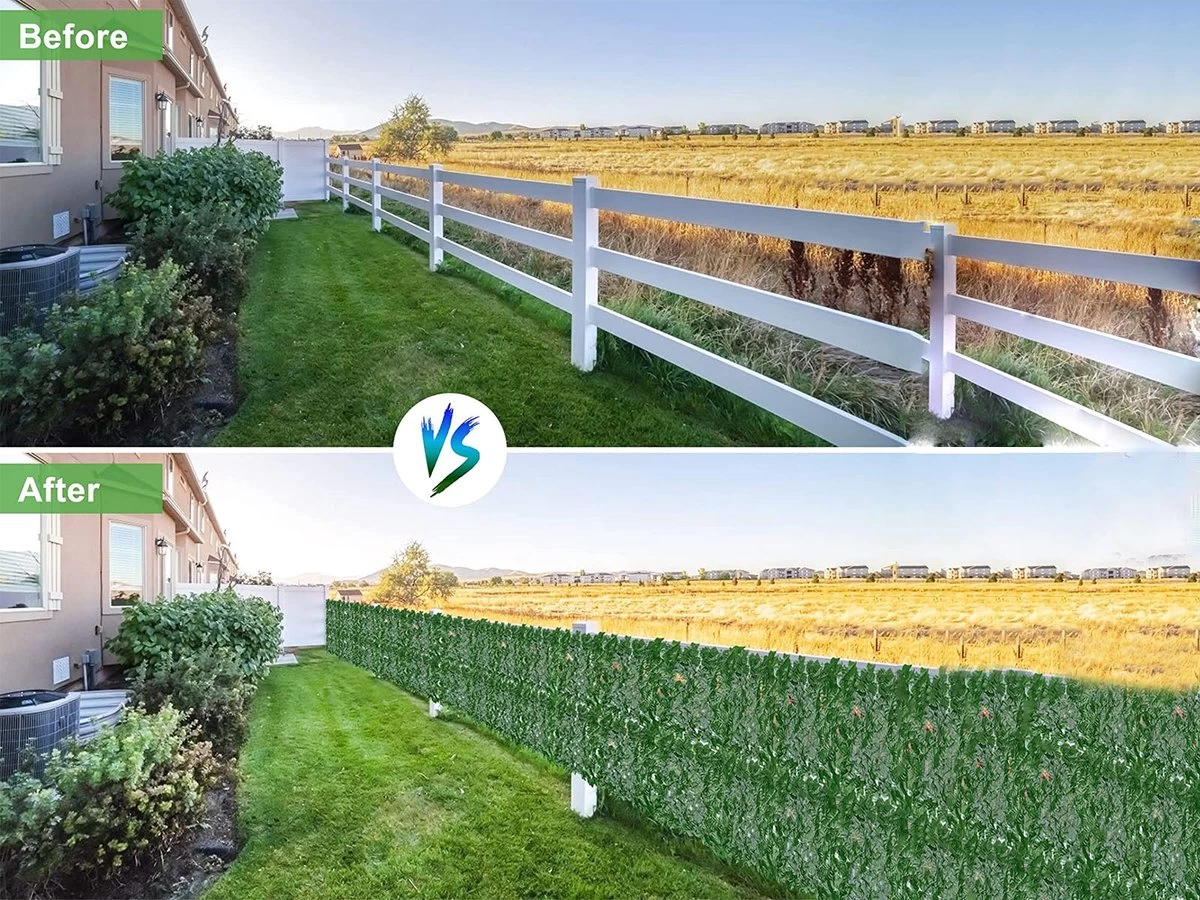 Veel balkons kunnen wel wat groen gebruiken, want zo een betonnen wand is nou niet het meest gezellige dat je kan bedenken. Met dit gave scherm van hoogwaardige kunststof bladeren kan je een zijde van 1 bij 3 meter bedekken om dat balkon om te toveren tot een gezellige botanische zitplek. Heb je geen balkon, maar een terras of een saaie schuur of wand die je wilt opleuken? Of wil je iets meer privacy rondom je huis of tuin? Het kan allemaal met dit gemakkelijk te bevestigen scherm! Het blad is gemaakt van gerecycled en geurloos materiaal en is dus ook zeer milieuvriendelijk. Het scherm is bestand tegen weer en wind en verkleurd niet. Naast het feit dat het scherm er leuk uit ziet, vermindert het ook geluidsoverlast en je hoeft het ook nog eens geen water te geven!