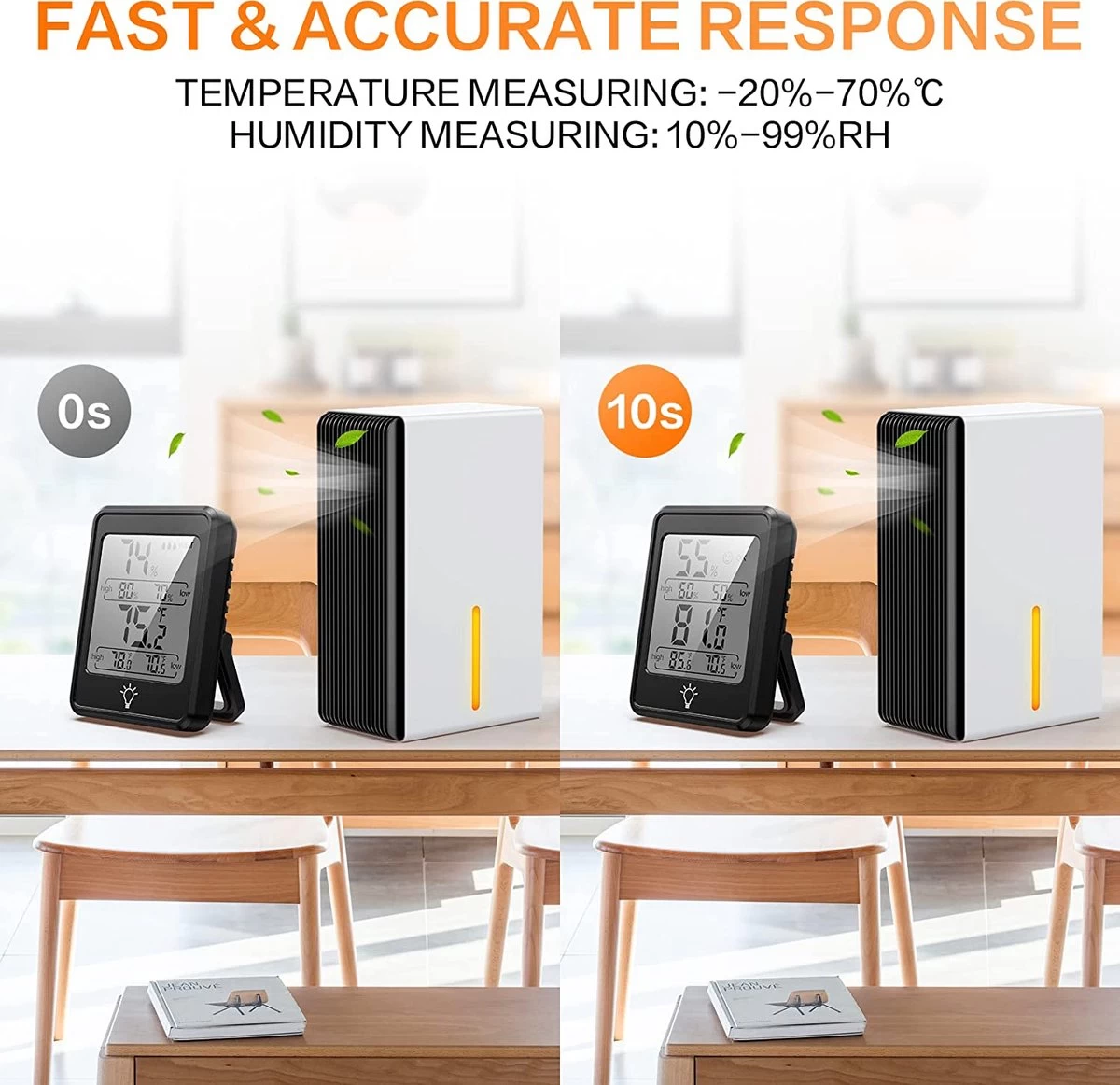 The temperature accuracy is: ±1.8℉/±1℃; the humidity accuracy is: ±5%RH (within the range of 30%-70%RH) The temperature measurement range is from -4℉-158℉ (-20℃-70℃) ; Humidity measurement range is 10%-99%.