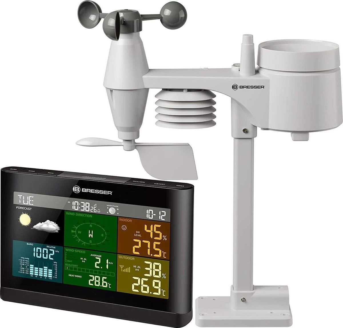 Dit Bresser 5-in-1 weerstation heeft een compact ontwerp maar geeft veel verschillende informatie. Die informatie lees je makkelijk af op het heldere kleurendisplay. De buitensensor geeft betrouwbare meetwaarden voor de windsnelheid, windrichting, luchtvochtigheid, temperatuur en neerslag door het basisstation. Naast de real-time waarden toont het basisstation ook diverse historische waarden. Op basis van diverse meetgegevens berekent het weerstation een zeer betrouwbare, lokale weersvoorspelling voor de komende 12 uur. Deze wordt op het basisstation weergegeven met zes grafische symbolen.