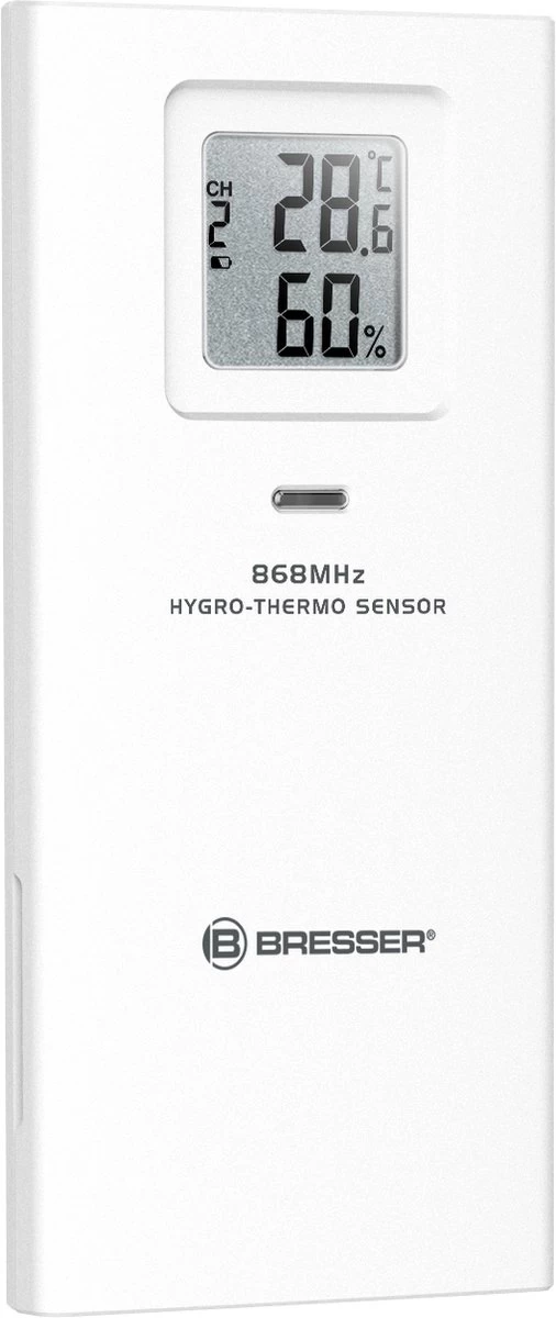 De perfecte uitbreiding voor uw bestaande BRESSER weerstation is deze hoogwaardige buitenvoeler voor temperatuur- en luchtvochtigheidsmeting. Het apparaat scoort met een extra groot zendbereik van maximaal 150 meter op een radiofrequentie van 868 MHz. Bovendien kunt u zeven kanalen instellen op de radiosensor. Maar dankzij het geïntegreerde display, kunt u de precisie thermo-hygrosensor ook onafhankelijk van een weerstation gebruiken als een standalone oplossing.