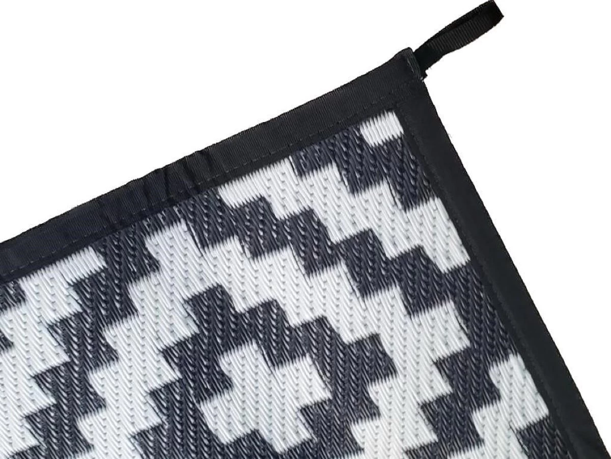 Het kleed is aan beide zijde te gebruiken. Kies voor de zwart/wit variant of juist de wit/zwarte. Met de bijgeleverde draagtas neem je het kleed gemakkelijk mee naar het strand, park, de camping of waar je maar wilt! Op de hoeken zitten lussen waarmee je het kleed vast kunt zetten.