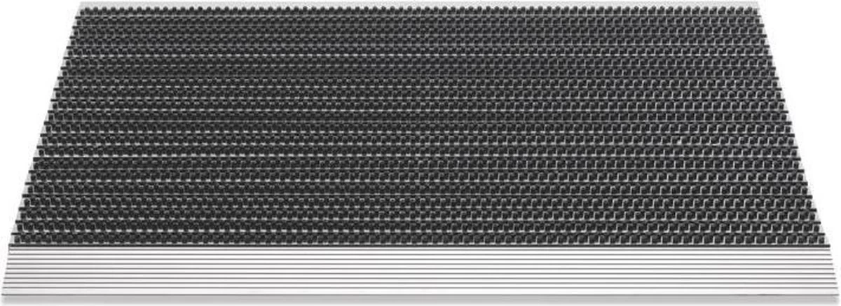 Scrapermat Tiger is gemaakt van aluminium en een combinatie van kunststof en PVC. Deze buitenmat met harde borstels schraapt het grove vuil van de schoenen en zorgt voor een schone vloer. Bovendien is de mat aan twee zijden voorzien van een brede, aflopende aluminium strip. Dit vermindert de kans op struikelen en zorgt ervoor dat de mat goed blijft liggen. Schrapend en representatief. De deurmat heeft een afmeting van 40 x 60 cm en is antraciet van kleur.