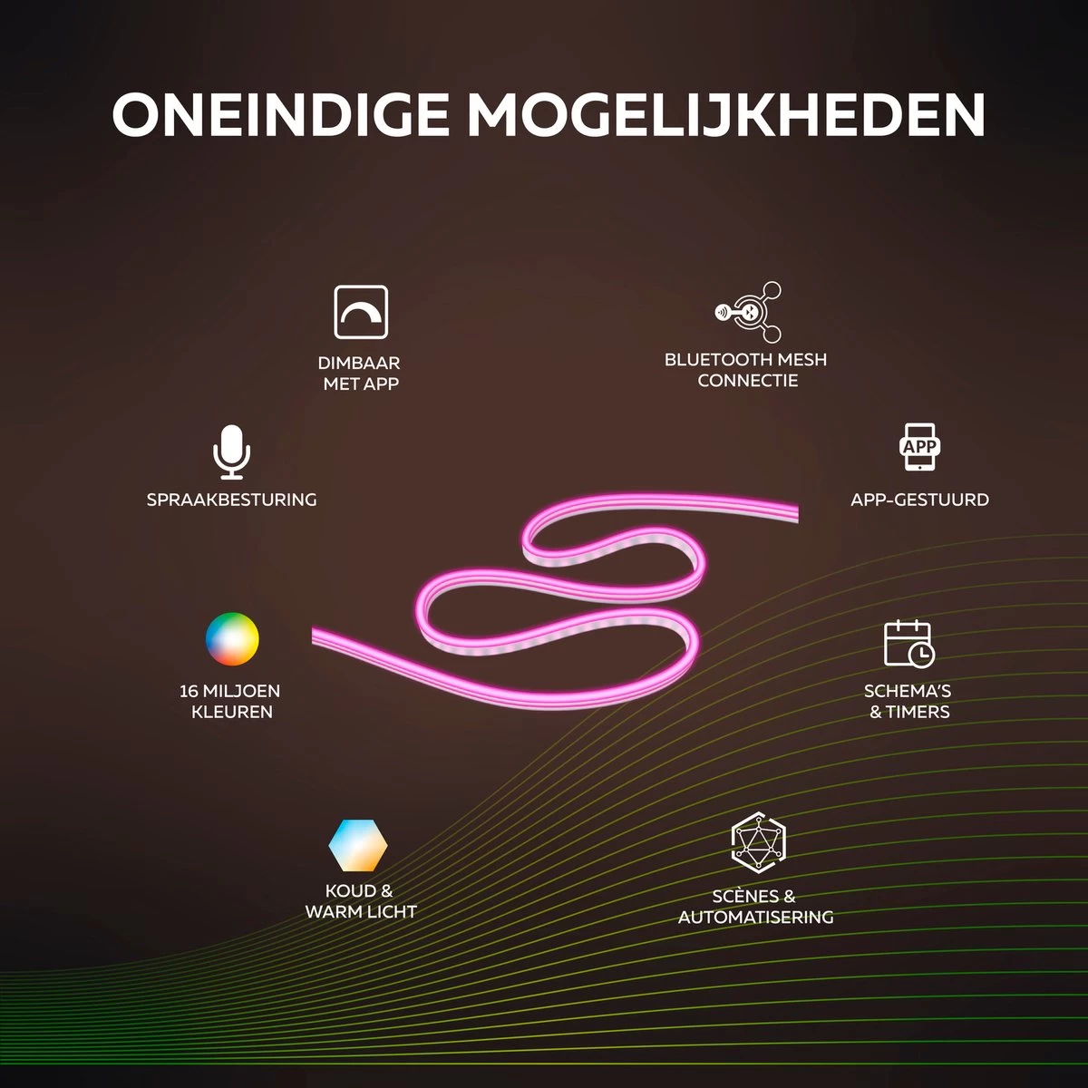Met deze slimme buiten led-strip creëer je de perfecte sfeer in jouw tuin! Door middel van de gratis Calex App is deze smart led strip draadloos te bedienen, ook wanneer je zelf niet thuis bent. Accentueer en verlicht onderdelen in jouw tuin en geniet van warm wit licht met 16 miljoen extra kleuropties. Natuurlijk komt deze buitenverlichting ook goed tot zijn recht op jouw balkon of terras! Let op: voor deze tuinlamp heb je een Calex Bluetooth Link nodig, die zal zorgen voor optimale verbinding van jouw buitencollectie.
