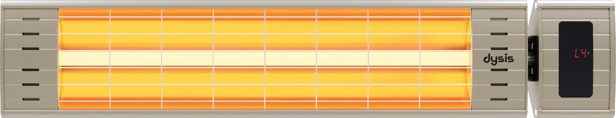 - IP 65 terrasverwarmer: Buitengebruik wordt gegarandeerd door de IP65 bescherming tegen regenwater, waterstralen, vuil en stof. Het heeft ook een kantel- en oververhittingsbeveiliging.
