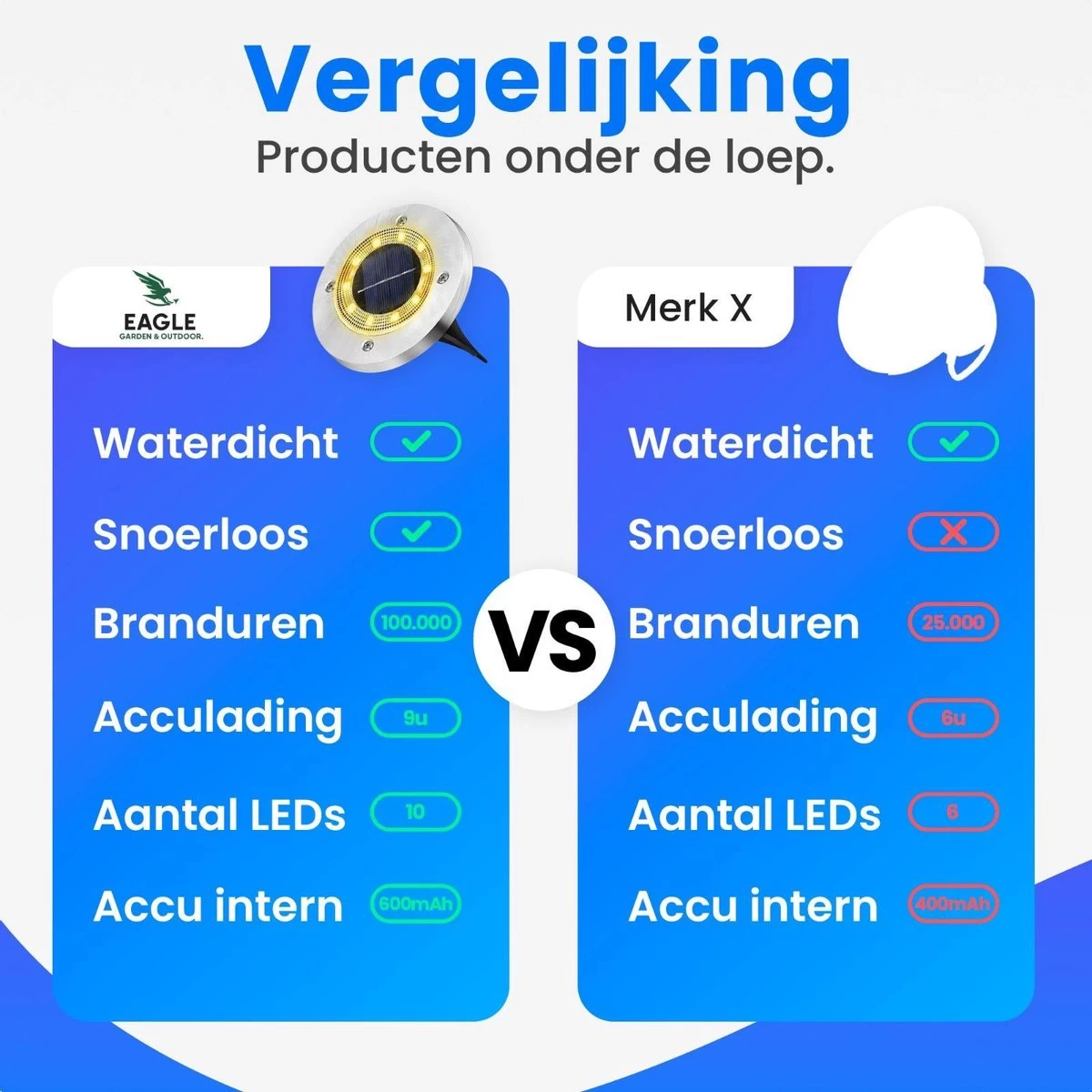 Met de set van vier grondspots kies je voor prikspots van kwaliteit die tot wel tien uur kunnen branden na een dagje zon.