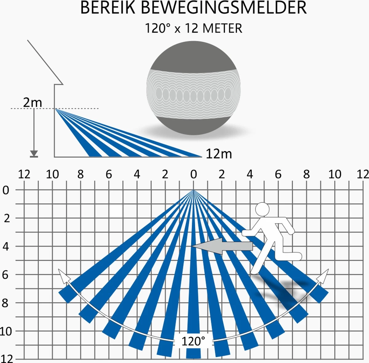 - Dag/nacht sensor instelbaar: 10 – 10.000 lux