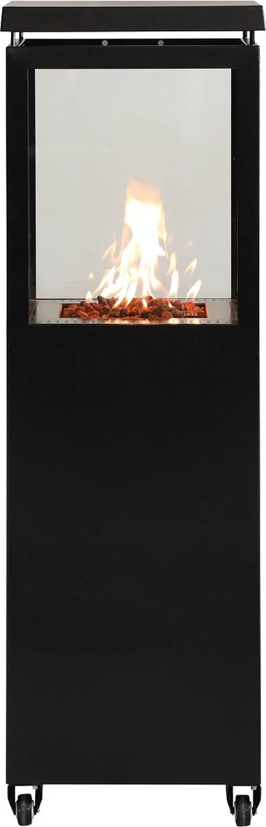 Deze terrashaard is een aanwinst voor ieder terras. Dankzij het stijlvolle design en het vermogen van 6500 W hoeft niemand te zitten rillen van de kou. Bovendien is de terrashaard een streling voor het oog, want niets is leuker dan naar de opflakkering van de vlammen te zitten staren. Dankzij de beglazing rondom rond kan iedereen het vuur gadeslaan. Met de vier wielen onderaan verplaats je de terrashaard in een handomdraai. Lavastenen zijn inbegrepen om het totaalplaatje nog aantrekkelijker te maken en letterlijk en figuurlijk nog meer warmte te laten uitstralen.