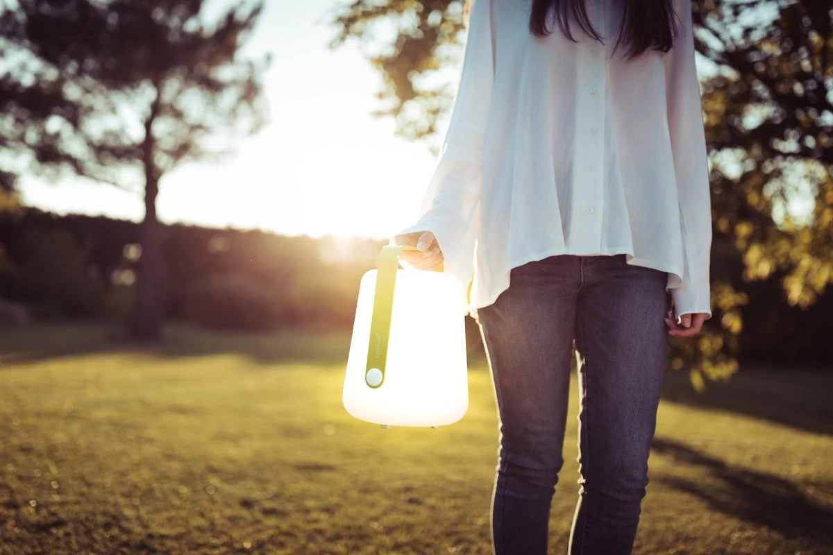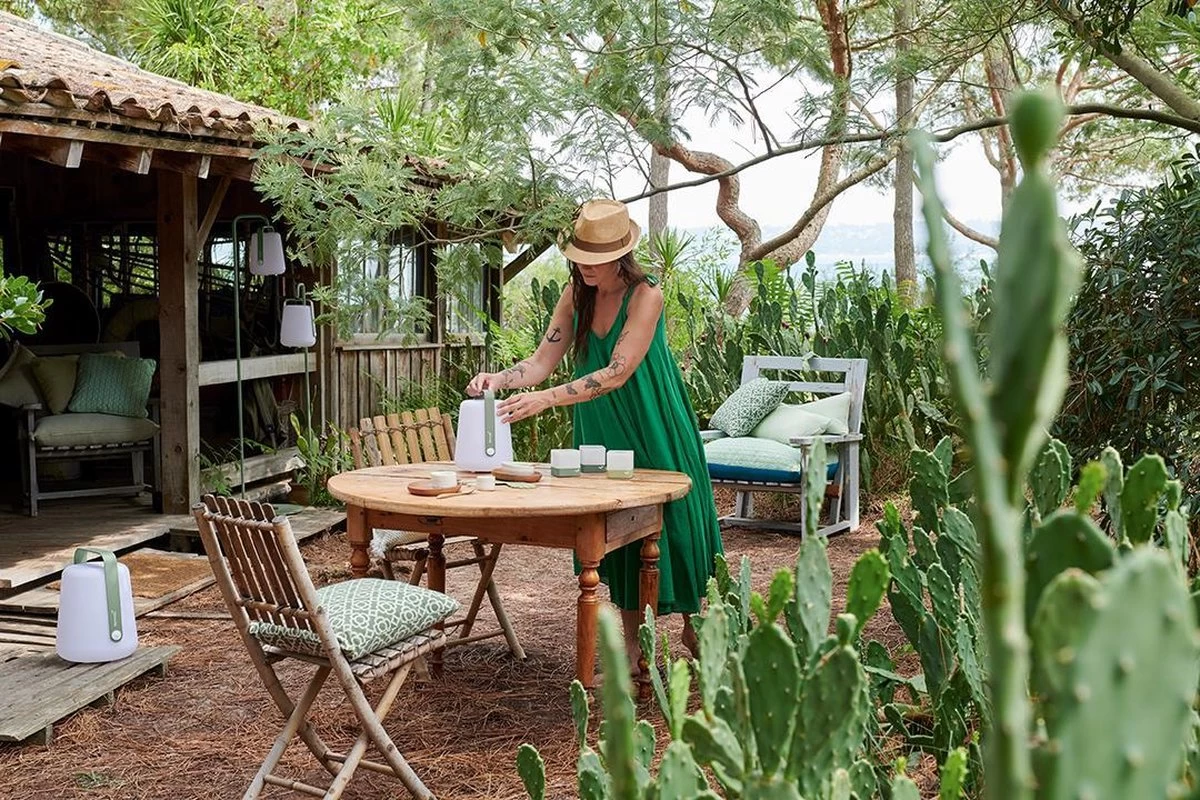 Dankzij de betaalbare prijs kan het in het meervoud worden gecombineerd! Het handvat, geïnspireerd op een headset, markeert de nomadische en trendy kant van de lamp. Het is ook een knipoog naar de metaalkennis van Fermob. Balad, de buitenlamp die oplaadbaar is via een eenvoudige USB-kabel, biedt een autonomie van ongeveer 12 uur, 3 lichttemperaturen: 1 warmwitte kaars (2300 ° K), 1 neutraal wit (4000 ° K) en 1 koel wit ( 6000 ° K) en 2 lichtintensiteiten (100% en 50%). Het is verkrijgbaar in verschillende kleuren uit de Fermob-kleurenkaart en kan worden gecombineerd met 2 metalen poten.