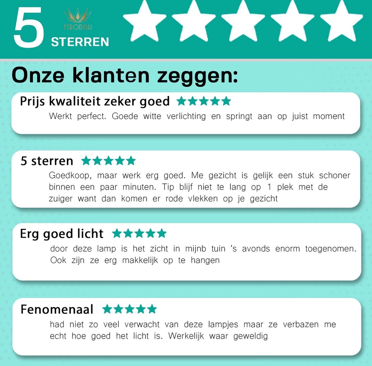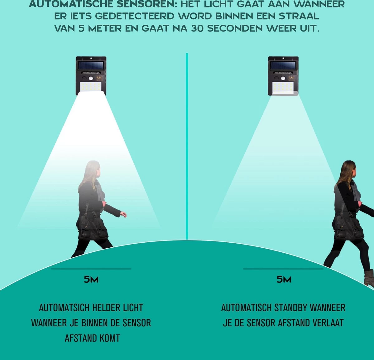 Met de solar lamp van Ferodeli® geniet je van meer licht en een groter lichtbereik. De 20 LED lampen met 750 Lumen geven bovengemiddeld veel licht af. Kies uit 2 verschillende lichtstanden: dim naar fel met sensor die 8 uur mee gaat of kies voor super fel met sensor die gemiddeld 6 uur mee gaat. Met onze 4-pack verlicht je het gehele gewenste oppervlak met één druk op de knop!