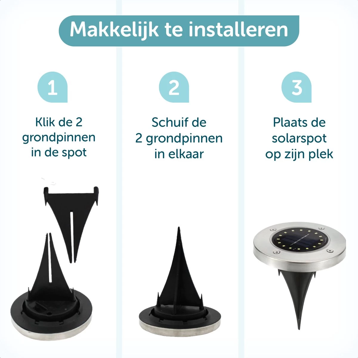 Alle 4 de lampjes worden geleverd met de bijbehorende grondpin, deze gaat tot wel 11 centimeter stevig de grond in. Maak je tuin helemaal af, geniet in de zomer tot diep in de nacht van je terras en zo kan je tenminste veilig de oprit bewandelen als het pikkedonker is!