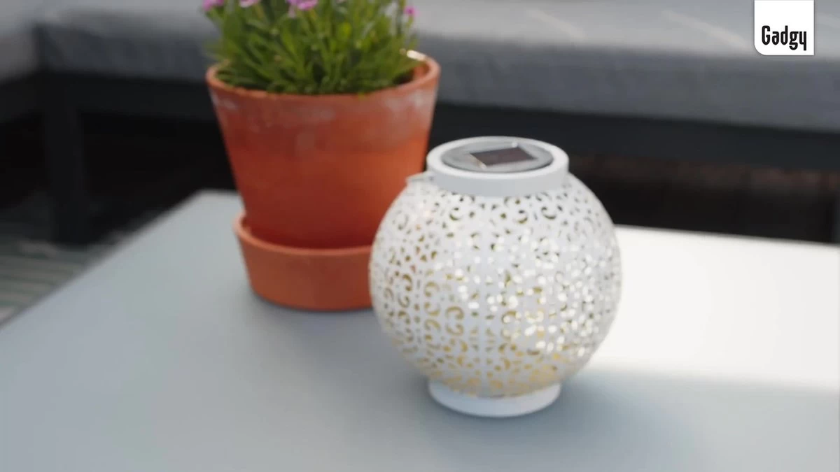 Deze mooie wit metalen Gadgy Solar lamp is een geweldige toevoeging voor jouw tuin of balkon. De ronde lantaarn met gouden binnenkant staat schitterend op de tuintafel en is ook op te hangen door middel van het handvat. De lantaarn is spatwaterdicht en is daardoor zeer geschikt voor gebruik in de tuin.