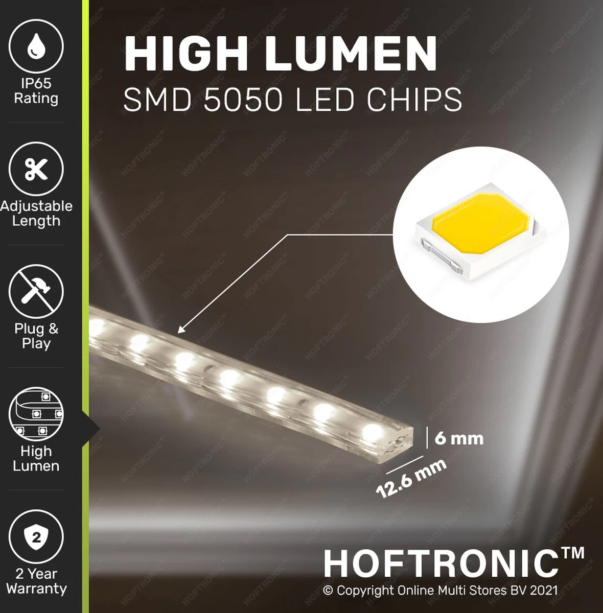 Deze LEDstrip is een kwaliteitsproduct van het merk HOFTRONIC. HOFTRONIC is zowel fabrikant als verkoper van LED verlichting. Hierdoor betaal jij altijd de scherpste prijs, profiteer je van de hoogste kwaliteit en geniet je van de beste garantievoorwaarde. Op deze LED strip ontvang je dan ook 2 jaar garantie. Gaat er in deze twee jaar iets defect? Dan zorgt HOFTRONIC voor een kosteloze vervanging. Vragen of opmerkingen over de producten van HOFTRONIC? Dan zit er een team productspecialisten voor je klaar.