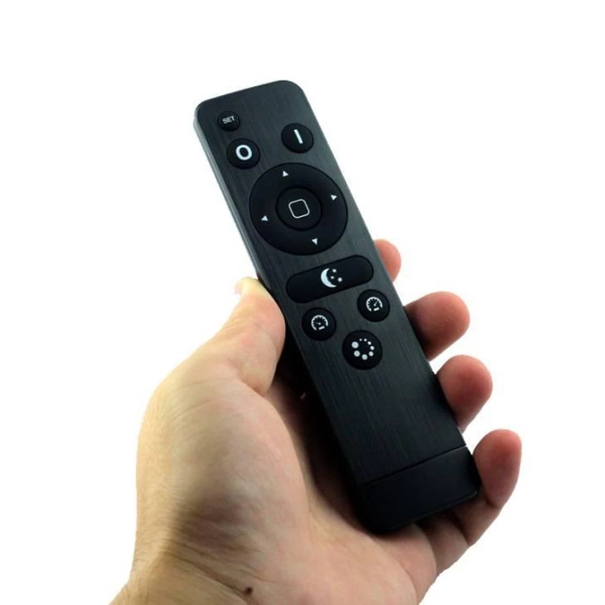 De afstandsbediening werkt op radio frequentie. Een groot voordeel hiervan is dat je niet hoeft te richten op de spots om deze te dimmen. Daarnaast werkt dit signaal op veel langere afstanden dan het bekende infrarood signaal (van deze techniek maakt de afstandsbediening van je televisie gebruik).