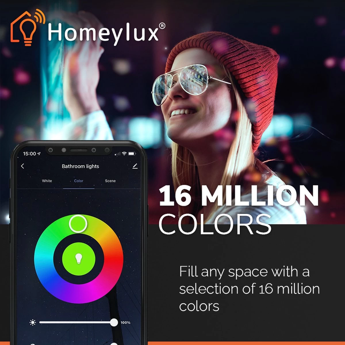 - 16,5 miljoen kleuren (RGBWW): Kies uit 16,5 miljoen kleur d.m.v. je smartphone of smart assistent.