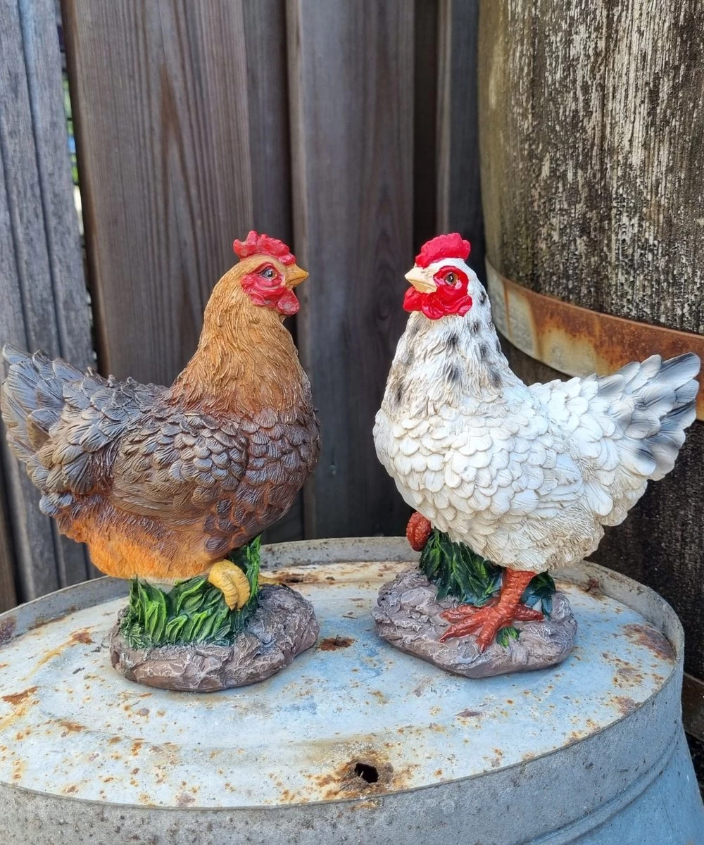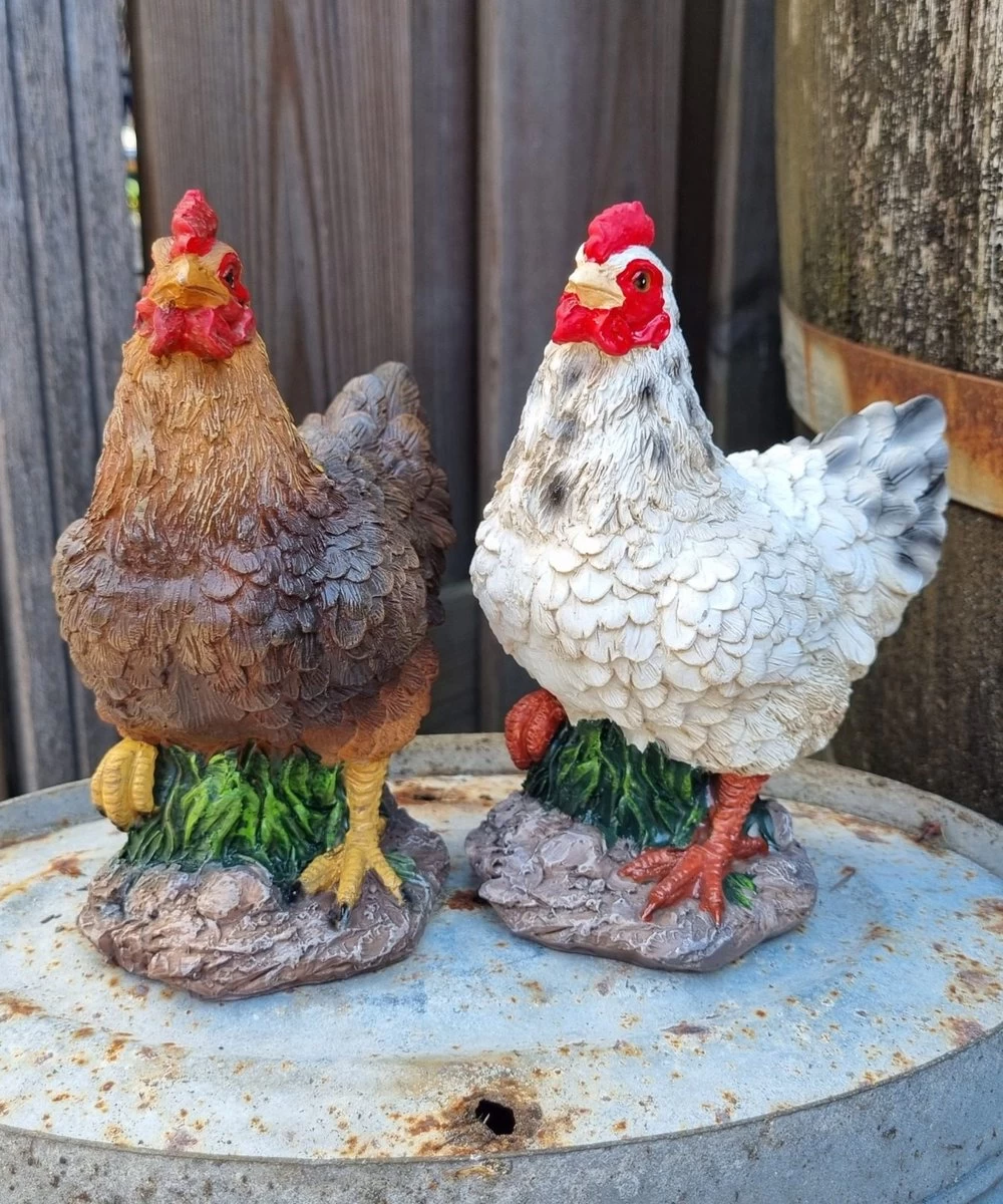 Dit set van 2 nieuwsgierige kip beelden doen het ook altijd goed als cadeau. Verras je vrienden, familie of buren met deze 2 mooie kippen beelden en tover meteen een lach op hun gezicht! Ze kunnen zowel binnen als buiten neergezet worden, dus de jarige of het bruilofts koppel vind er altijd wel een geschikte plek voor.