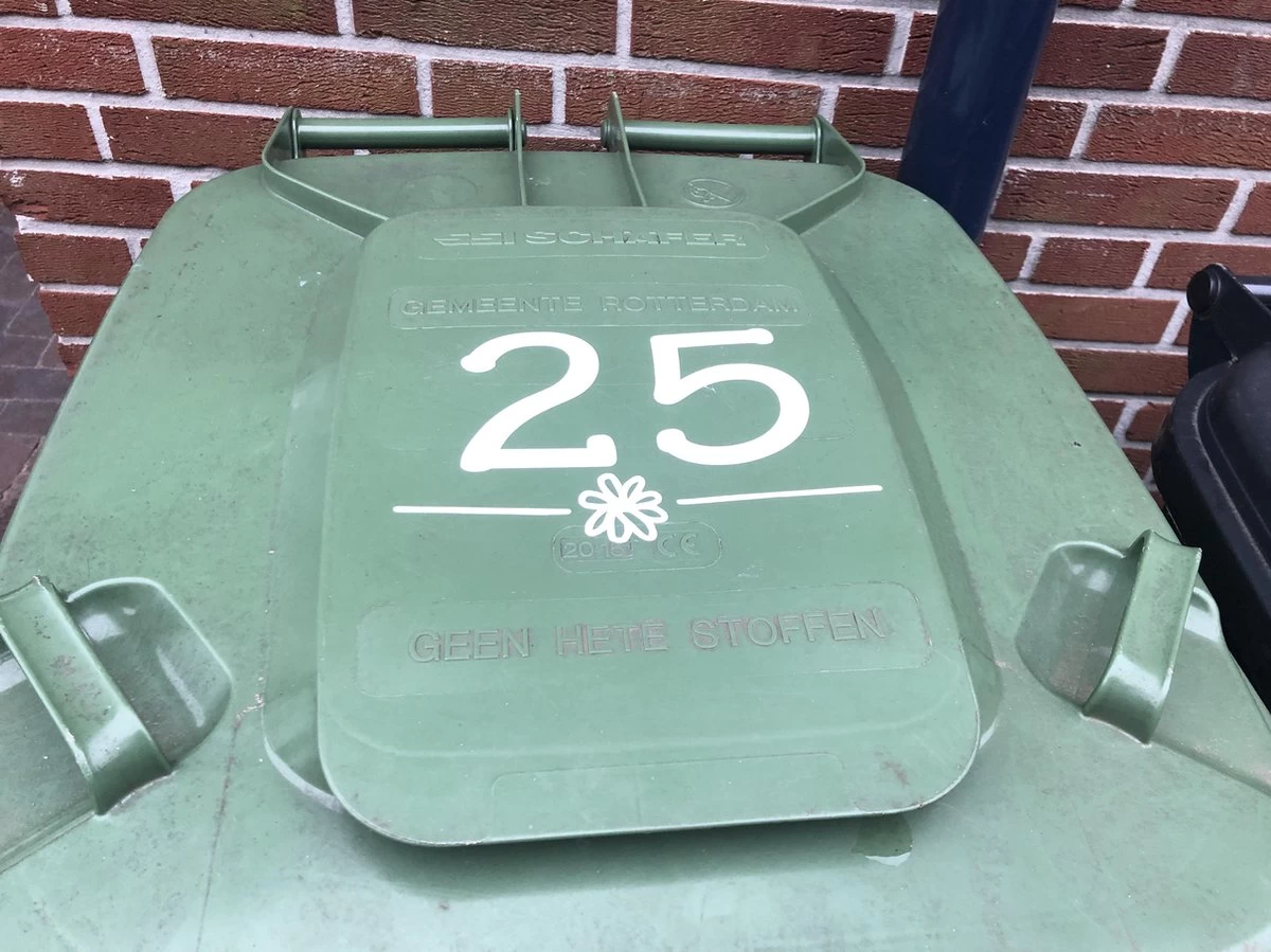 Let er op dat u de sticker niet plakt waar de grijper van de vuilniswagen de kliko tilt.