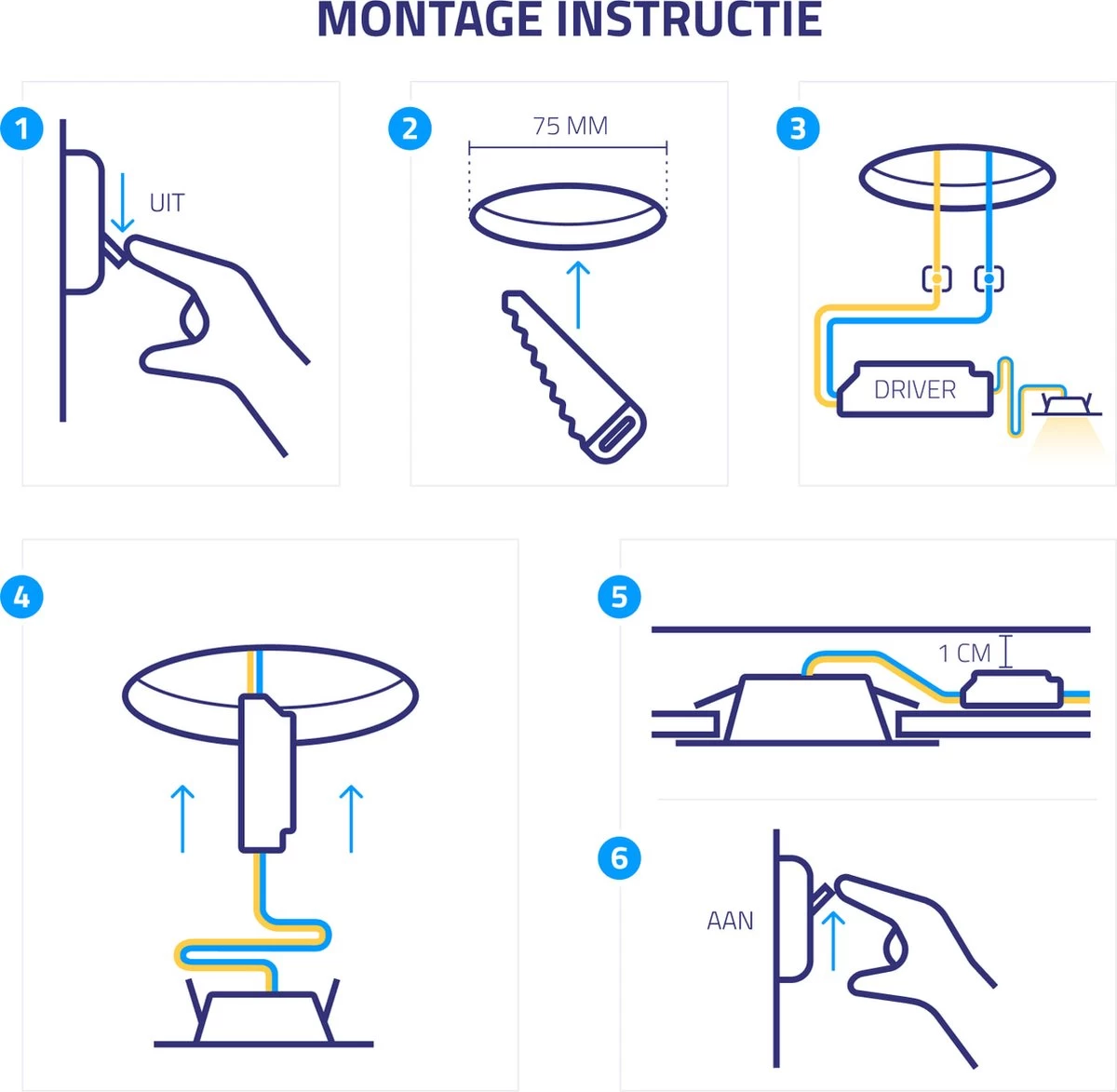 Deze fraaie LED-inbouwspot is geschikt voor alle ruimtes, zo kan de inbouwspot met lage inbouwdiepte gebruikt worden in droge ruimtes zoals in de woonkamer en keuken. Ook zijn de LED-inbouwspots geschikt voor vochtige ruimtes zoals de badkamer of onder de overkapping, de spots zijn namelijk waterdicht IP54. Doordat de inbouwdiepte erg laag is (23 mm), kunnen de spots ook in plafonds gebruikt worden waar zeer weinig ruimte is. Aan elke LED-inbouwspot zit een driver welke wordt meegeleverd. De hoogte van de driver is gelijk aan de hoogte de spot waardoor deze overal past waar de spot ook past. Doordat er gebruik wordt gemaakt van een driver, werken de spots op 230V. U kunt zoveel spots aansluiten als u wilt, ze kunnen parallel worden aangesloten. De afmetingen van de driver zijn 95 x 40 x 23 mm (lengte x breedte x hoogte). De kabel van de LED-inbouwspot naar de driver zit aan de zijkant van de spot waardoor er geen extra inbouwdiepte nodig is voor de kabel.