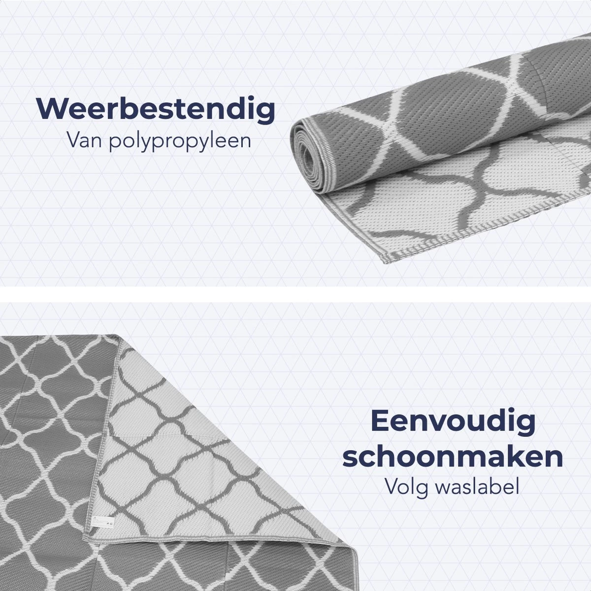 Dit buiten vloerkleed van LifeGoods is gemaakt van hoogwaardige materialen die zorgen voor een langdurige kwaliteit. Zo kun jij eindeloos blijven genieten van de gezelligheid in jouw buitenruimte! Het vloerkleed voor buiten is bestand tegen weersinvloeden en kan daarom gebruikt worden in elk seizoen. Dankzij de kwalitatief hoogwaardige materialen zal het vloerkleed er seizoen na seizoen mooi uitzien, ongeacht de hoeveelheid regen of zon die het te verduren krijgt. Bovendien is het gemakkelijk schoon te maken, wat het ideaal maakt voor gebruik in de tuin of op een terras. Maar let wel! Het buiten vloerkleed kan niet in de wasmachine.