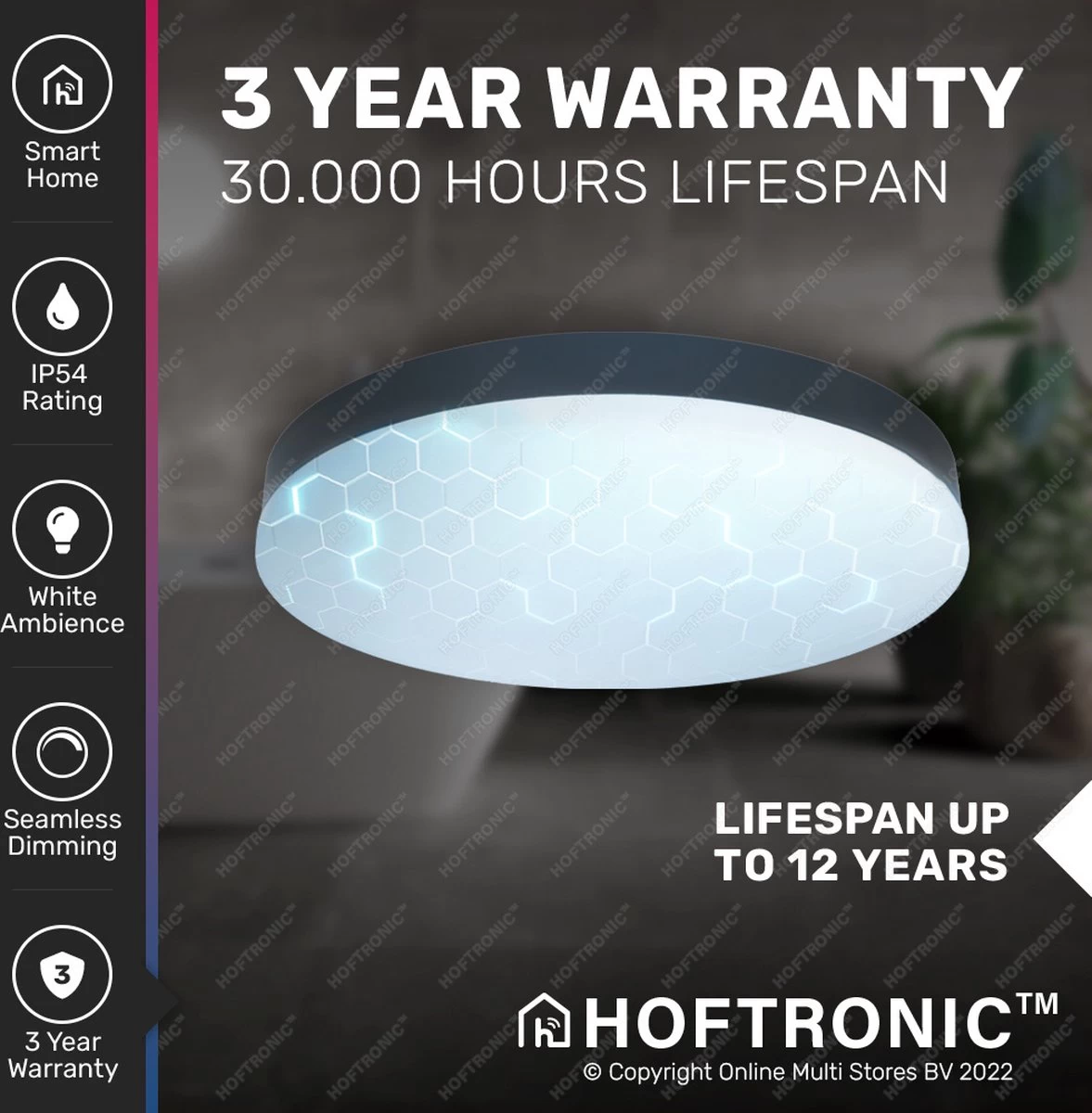 De Lumi is een kwaliteitsproduct van het merk HOFTRONIC. HOFTRONIC is zowel producent als verkoper van LED verlichting. Hierdoor profiteer je altijd van de scherpste prijs, hoogste kwaliteit en beste garantievoorwaarden. Op deze Lumi plafondlamp ontvang je dan ook 3 jaar garantie. Defecten worden in deze 3 jaar kosteloos opgelost. Kopen zonder zorgen.
