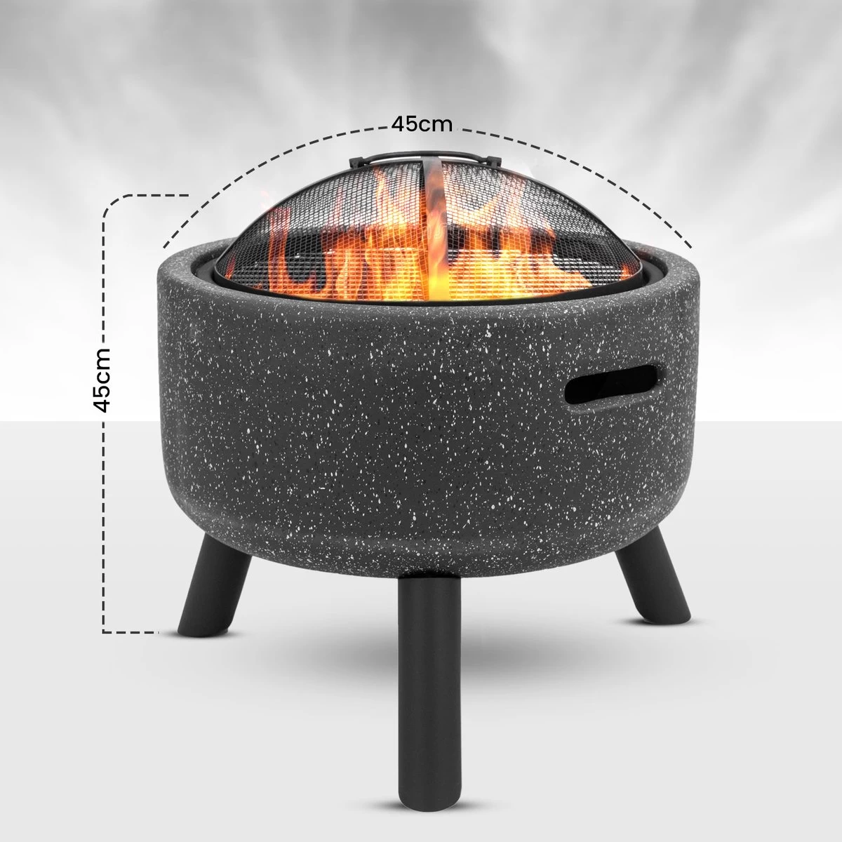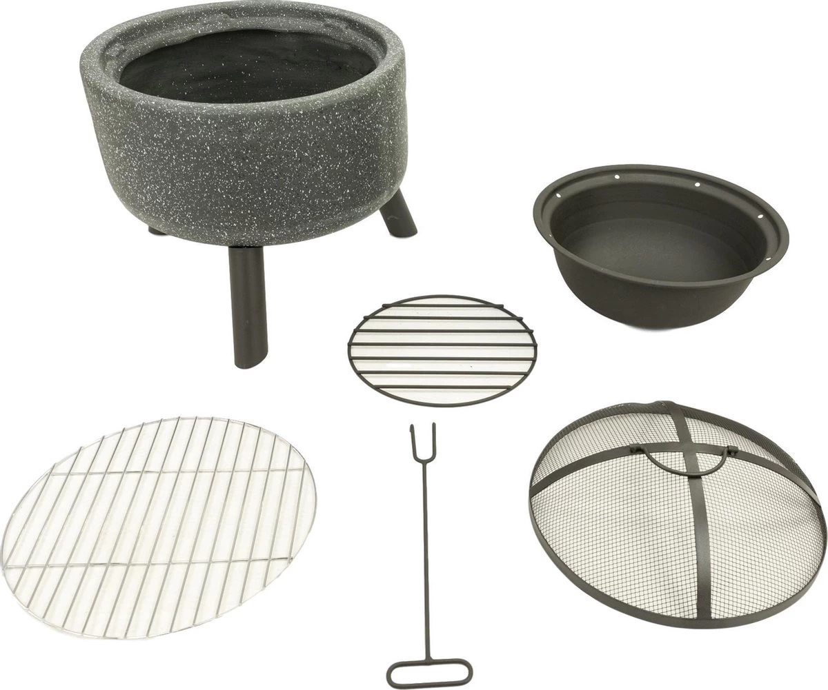 Geniet van een heerlijk knisperend vuur in je eigen tuin met deze vuurkorf in marmerlook! Compact, duurzaam en super stevig door een buitenkant van Magnesium Oxide, een lichtgewicht materiaal dat tevens zeer duurzaam is.