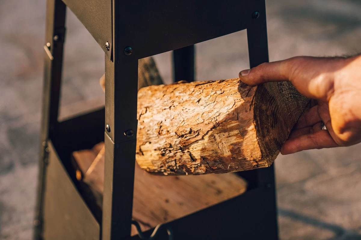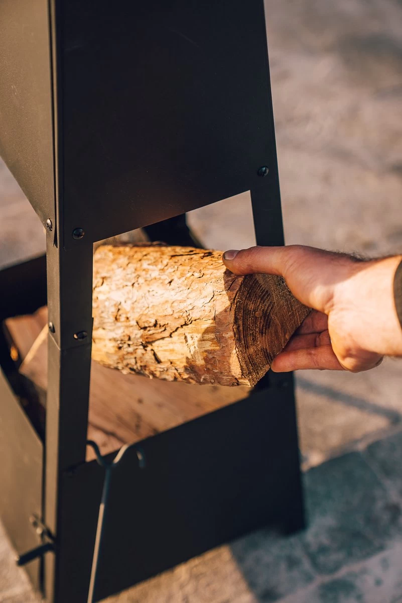Dankzij het afsluitbare deurtje aan de voorkant kan de haard gemakkelijk worden gevuld met hout of kolen.