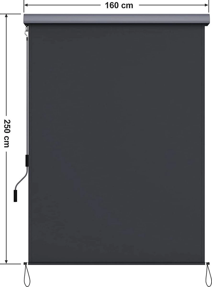 - Verticale luifel voor balkon en terras – de luifel is eenvoudig aan het plafond te monteren en kan handmatig op de juiste lengte worden afgesteld met behulp van een krukkoppeling. De luifel is uitschuifbaar tot ca. 2,40 m (max. Lengte 250 cm met cassette, breedte 160 cm)