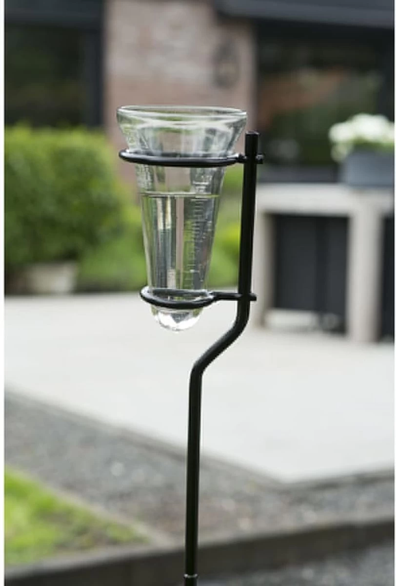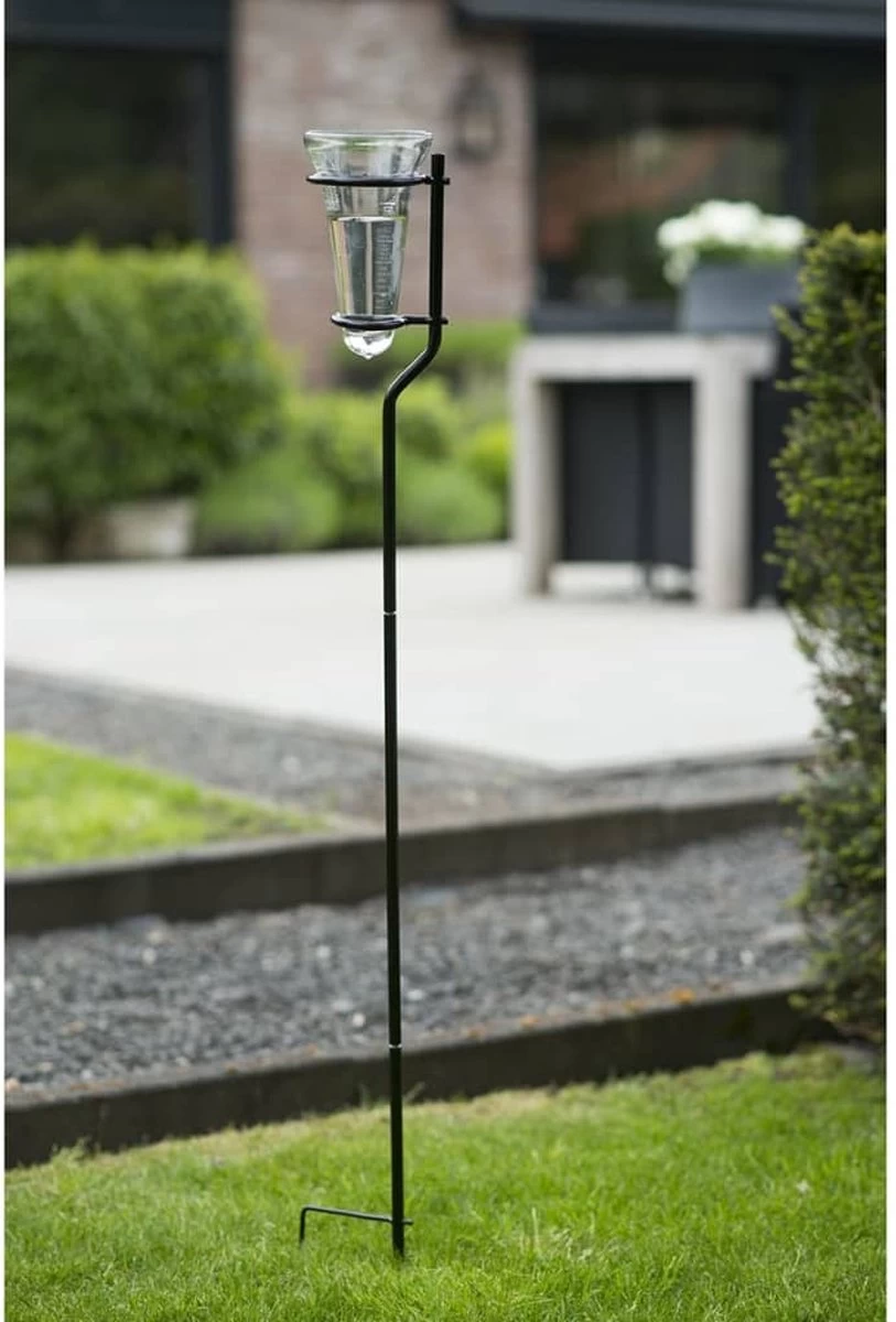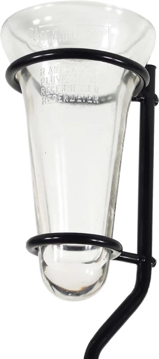 Deze Nature regenmeter kan worden gebruikt om de hoeveelheid neerslag te meten. De regenmeter heeft een 130 centimeter hoge metalen voet die een zwarte epoxy-afwerking heeft gekregen en gemakkelijk in de grond kan worden geplaatst. De regenmeter zelf is gemaakt van hoogwaardig glas en heeft een capaciteit van 25 mm. Dankzij de schaalmarkeringen is de meter gemakkelijk af te lezen.