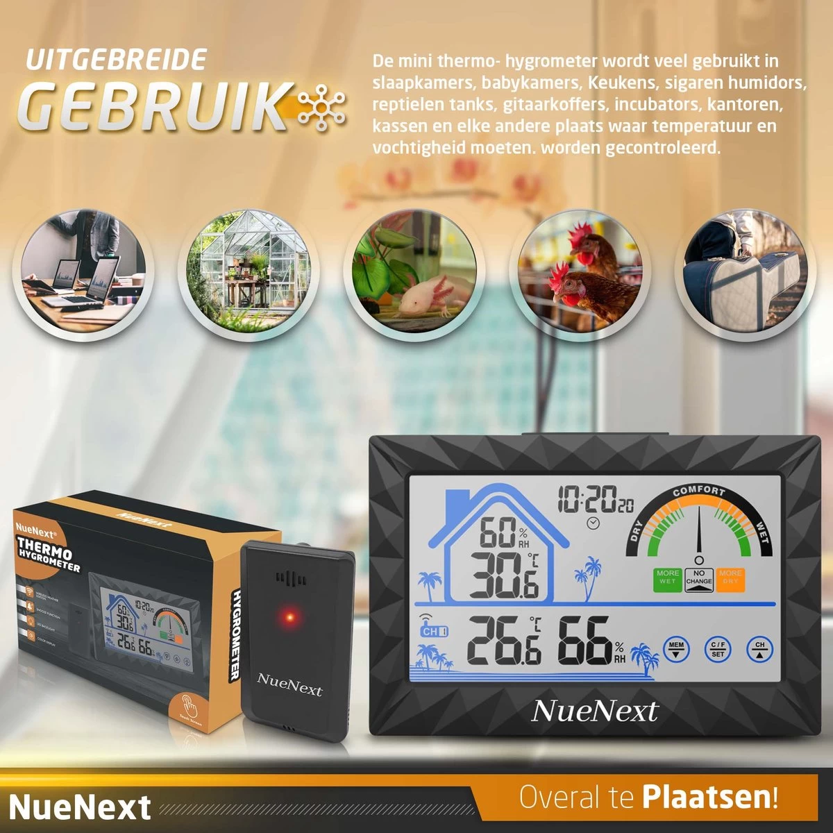 Mis deze kans niet om je leefomgeving te verbeteren met de NueNext digitale thermo- en hygrometer! Bestel hem vandaag nog en begin met het monitoren van je huiscomfort en -gezondheid!