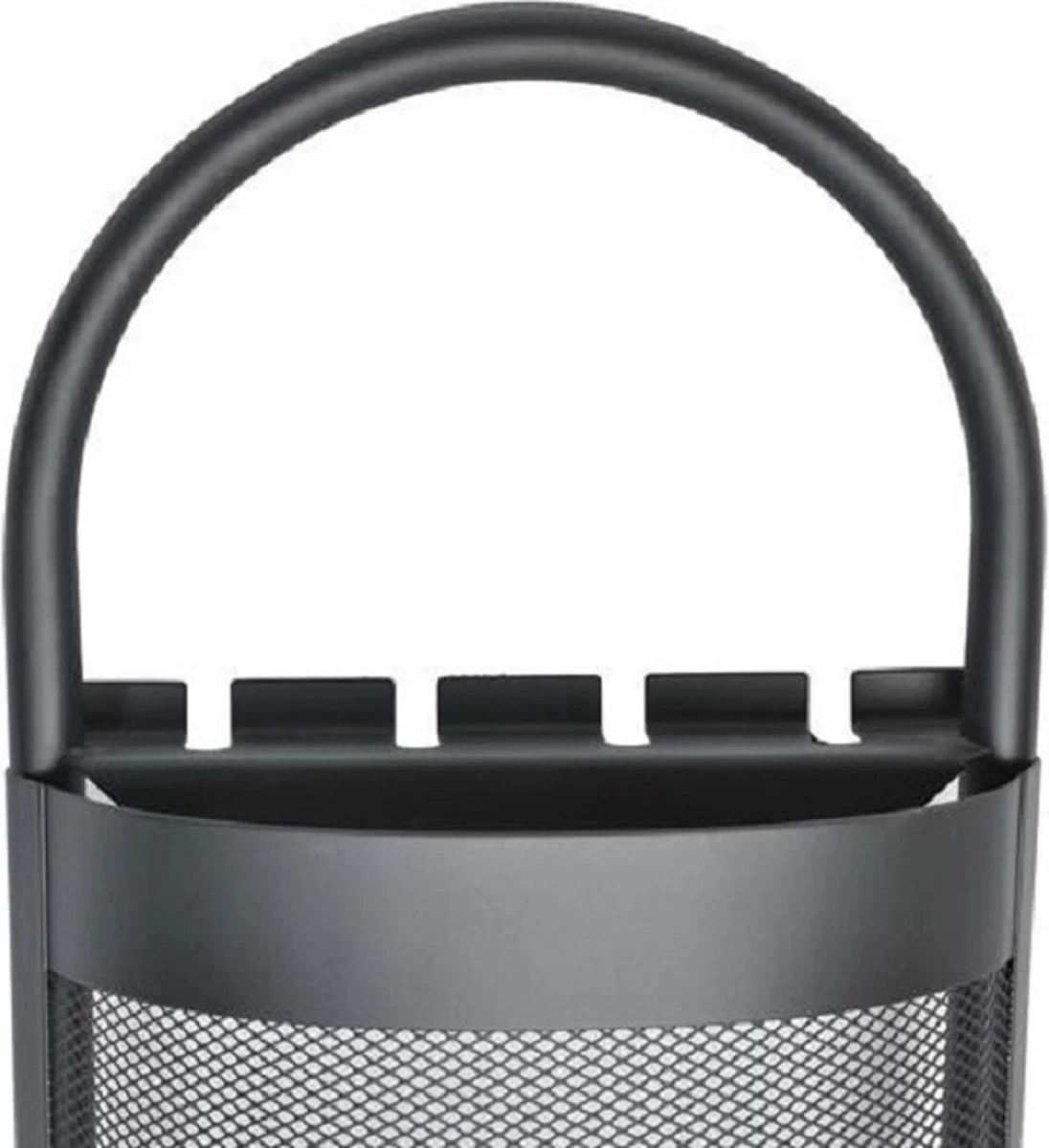 De hele set accessoires past in het rek dat in de set zit. Het rek is voorzien van een speciale houder voor het ophangen van de accessoires. Het heeft ook een geperforeerde hoes die als decoratie dient. Het is ook uitgerust met een handvat waardoor het rek gemakkelijker te verplaatsen is. De set heeft een moderne uitstraling.