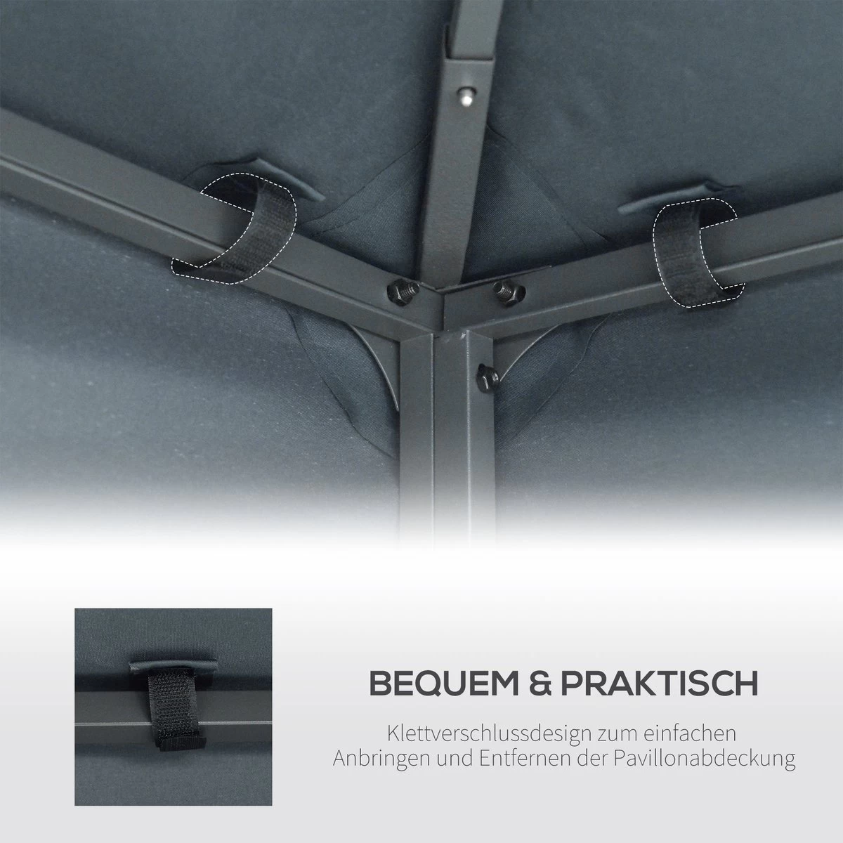 Ons metalen tuinpaviljoen van Outsunny voor als het gaat om zonwering in je eigen tuin. Dankzij het gebruik van stabiele en weerbestendige materialen belooft het paviljoen duurzaamheid en hoge functionaliteit en is het ideaal voor feesten en soortgelijke evenementen. Het dak is het deel van het paviljoen dat het meest wordt blootgesteld aan weersomstandigheden zoals zonnestraling, regen, wind en dergelijke. Je kunt bij ons daarom vervangende daken voor je metalen tuinpaviljoen aanschaffen. De levering vindt plaats zonder staven!