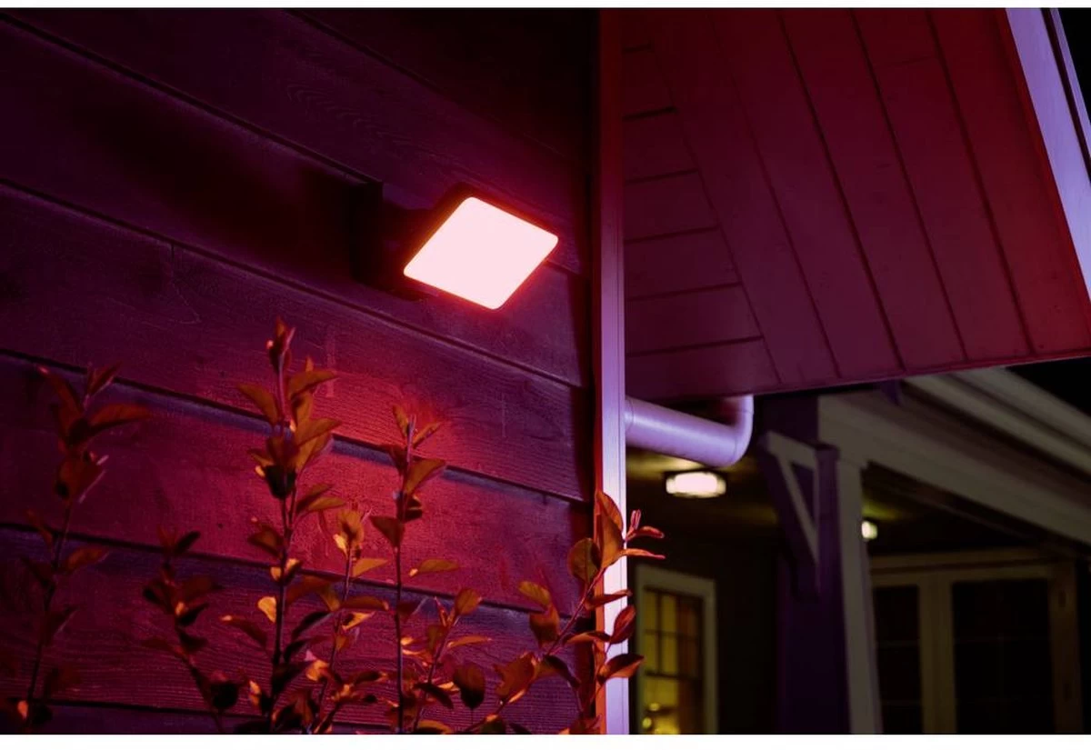 De zwarte Philips Hue Discover White and color ambiance verstraler is voorzien van een ingebouwde LED-verlichting die 16 miljoen kleuren kan schijnen. Daarmee kun je rondom je woning tegelijk voor sfeer en veiligheid zorgen. Verbind de lamp met een afzonderlijk verkrijgbare Philips Hue Bridge om hem te bedienen via de Philips Hue app op je smartphone of tablet. Daarmee kun je de lamp ook op een functionele manier gebruiken, zoals voor je oprit of boven de garage, door middel van timers en automatische schakelfuncties. Met geofencing kun je bovendien je lampen automatisch laten aangaan als je het huis nadert. De Hue Discover is bovendien spatwaterdicht dankzij zijn IP44-classificatie.