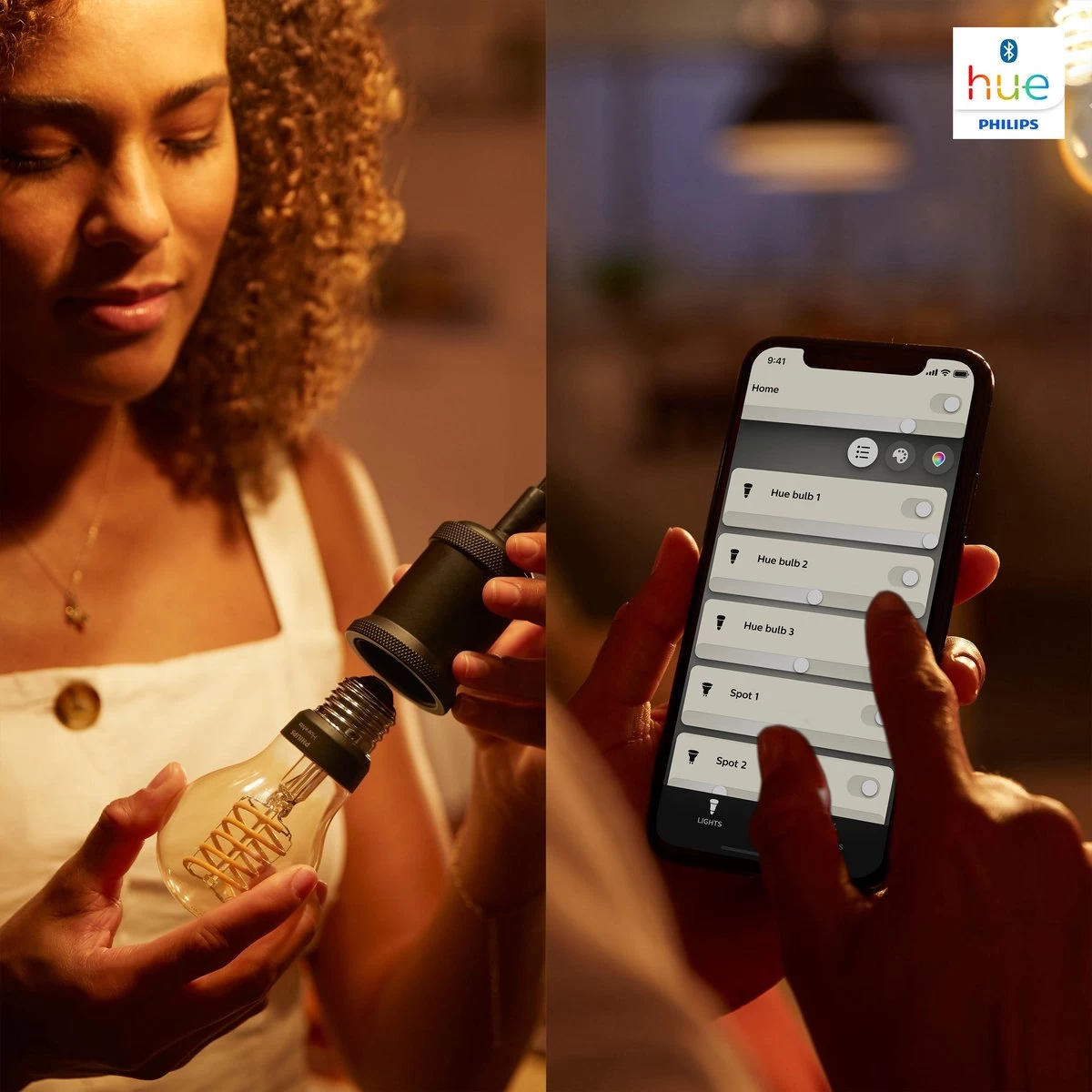 • Wordt geleverd inclusief Philips Hue White Filament Lamp A60/E27 (Warm wit licht).