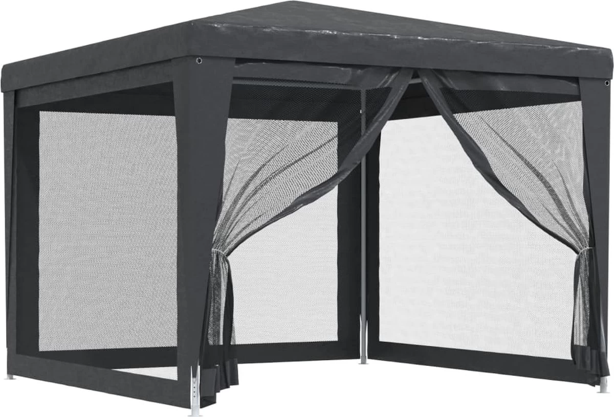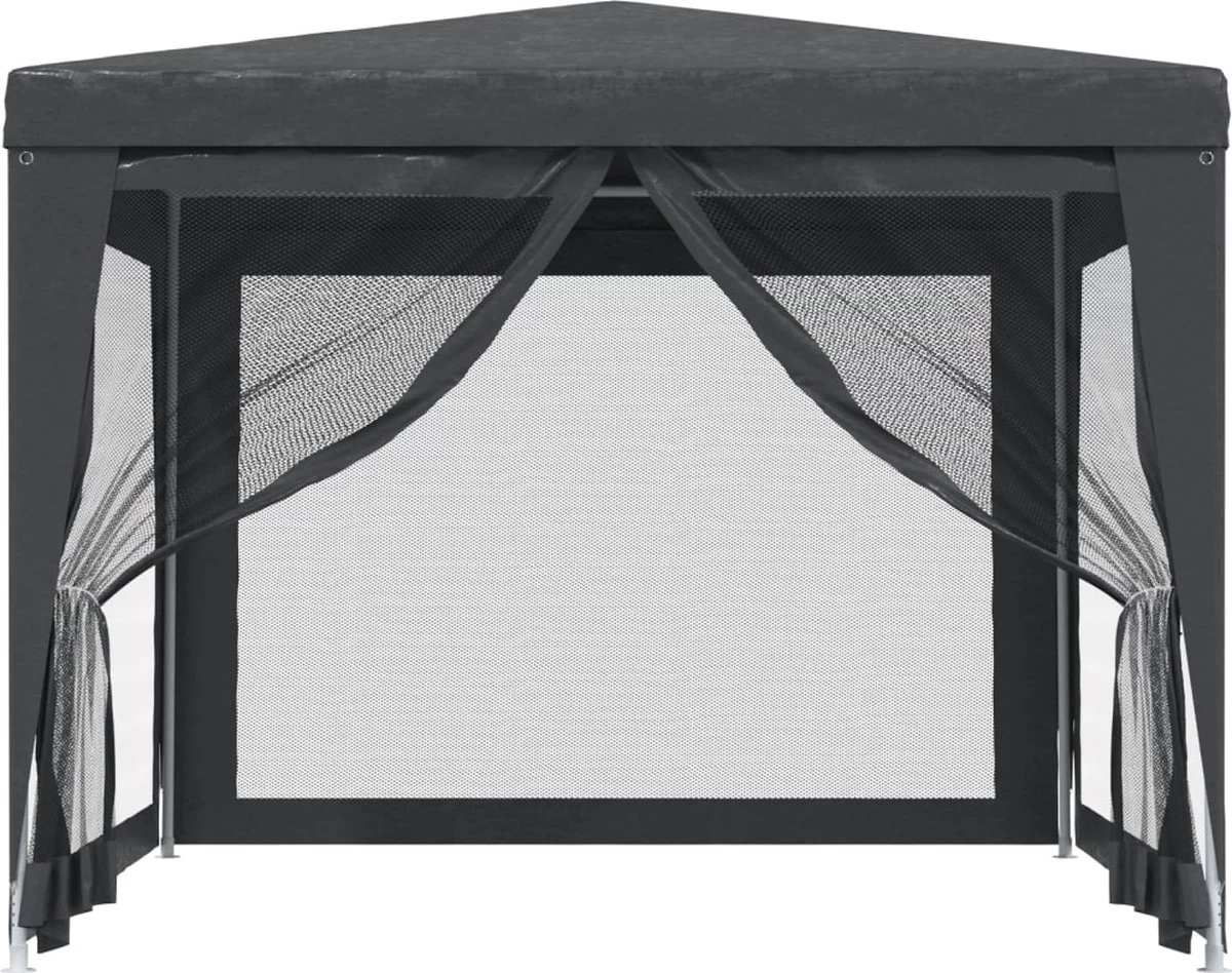 Deze partytent, met een robuust ijzeren frame, een waterbestendig dak en 4 mesh zijwanden, is een ideale beschutting tegen de zon.