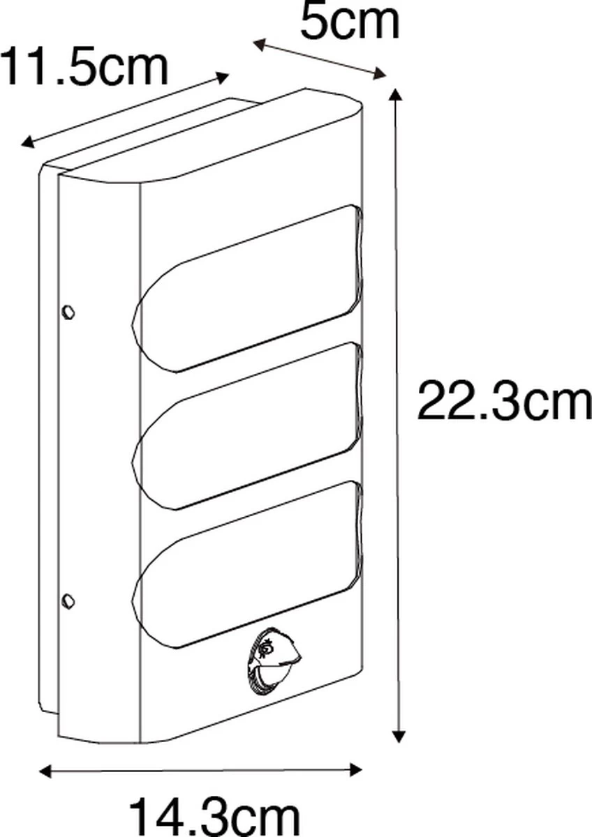 Ideale buitenwandlamp zwart met modern ontwerp die vanzelf aanspringt bij beweging. Met deze Gaev heb je altijd verlichting waar je het nodig hebt. Door de ingebouwde bewegingssensor gaat de lamp alleen aan wanneer je hem nodig hebt. Handig voor jezelf én draagt bij aan de veiligheid van je huis. Door de ingebouwde LED module van 600 lumen en 3.000 Kelvin heb je direct warm witlicht op de plek waar je het nodig hebt. Bijvoorbeeld bij de voordeur of de schuur. Met een IP waarde van IP-44 is hij spatwater dicht. De Gaev heeft een diepte van 5 cm, een hoogte van 22,3 cm en een lengte van 14,3 cm. Het moderne ontwerp is afgewerkt in mooi tijdloos zwart roestvrijstaal en kunststof. Twijfel niet langer en maak jouw huis een stukje veiliger met deze stijlvolle Gaev.