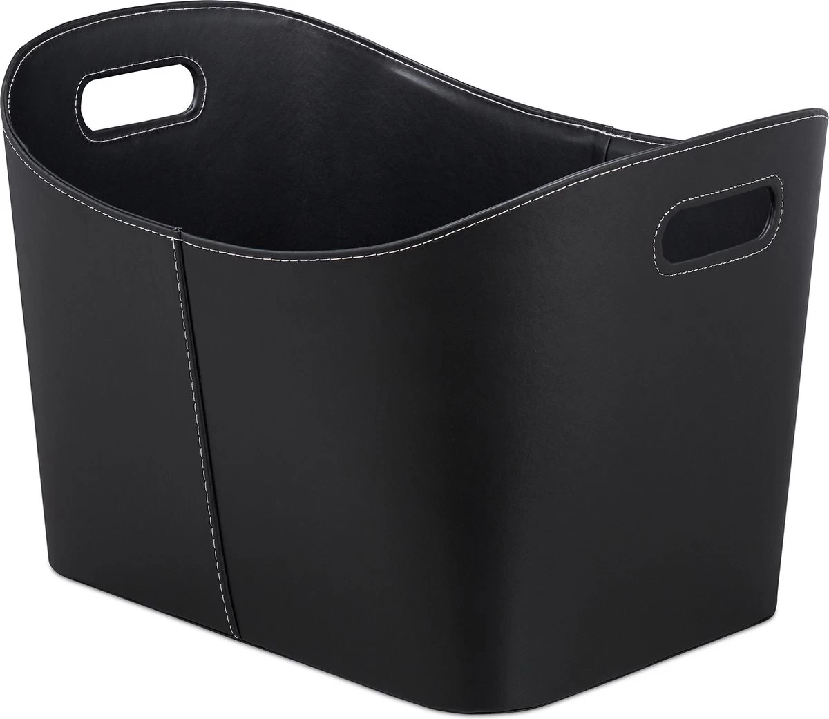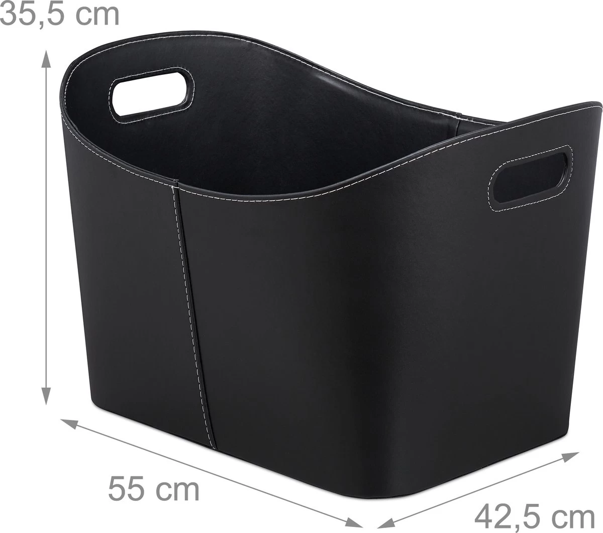 Deze houtmand is een stijlvol en op het zelfde moment handig open haard accessoire voor in de woonkamer. Draag het haardhout met behulp van de 2 grepen naar de open haard of kachel toe. Naar wens kan de gewenste grootte van de houtmand gekozen worden, om genoeg haardhout te verplaatsen. De moderne haardmand met zwarte kunstleren bekleding kan naast de opslag van hout ook voor tijdschriften, speelgoed en dergelijke gebruikt worden.