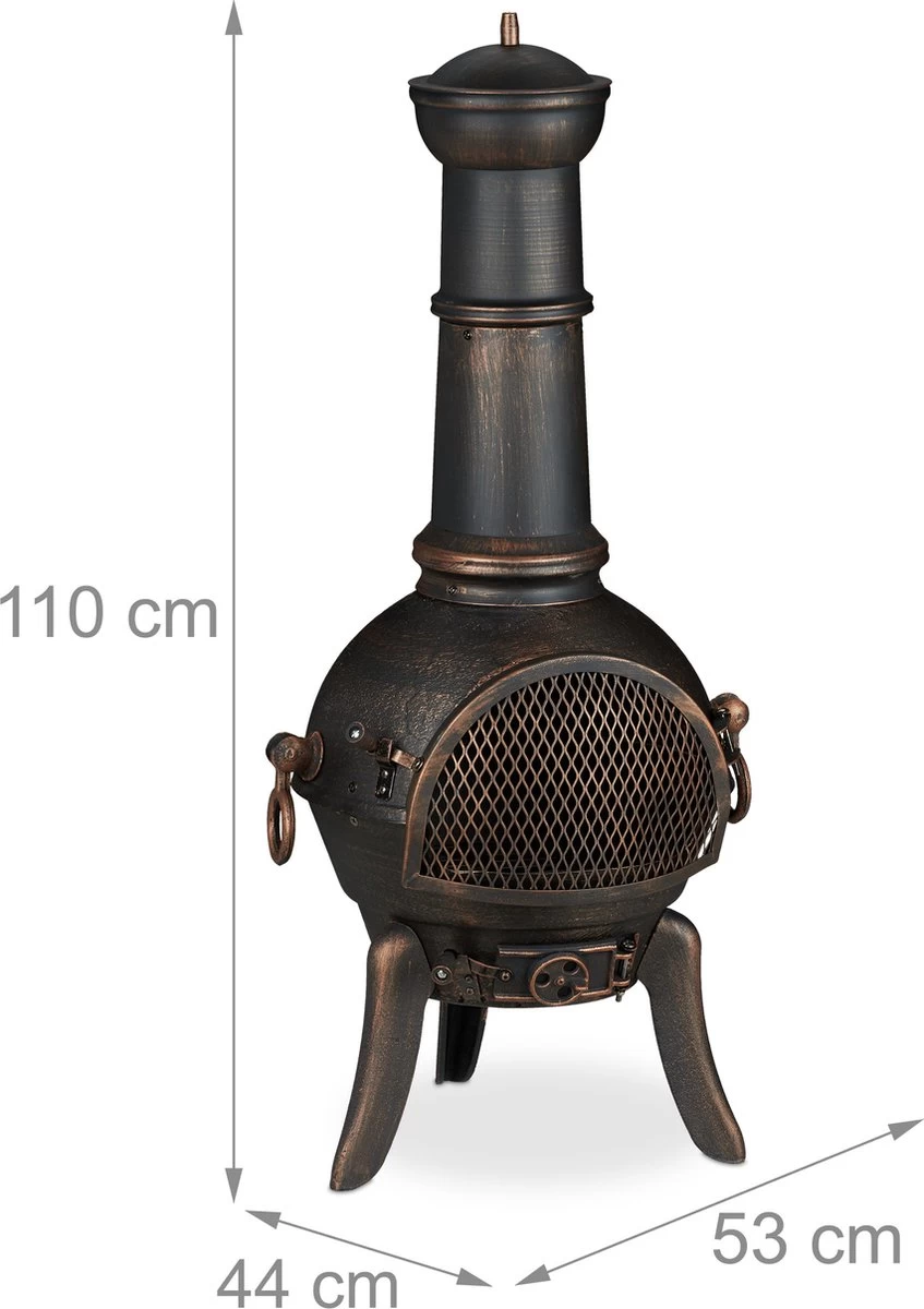 Wat is er mooier dan op een fijne zomeravond met familie en vrienden om een knetterend vuurtje te gaan zitten? De tuinhaard in Inca-design met gebogen poten zorgt niet alleen voor warmte, maar is ook echt een blikvanger. Het vuurrooster en de tochtklep zorgen voor een voortdurende luchtcirculatie, waardoor het vuur snel aanwakkert. Het deurtje met vonkenscherm beschermt dan weer tegen gevaarlijke vuurvonken en kijkt tegelijkertijd uit op het knetternde vuur