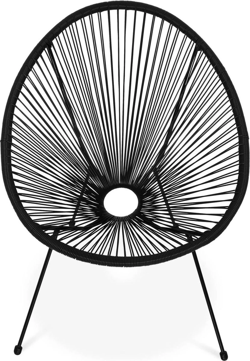 Set Van 2 Design Stoelen Ei-vormig – Acapulco Zwart – Stoelen 4 Poten Retro Design, Plastic Koorden, Binnen/buiten