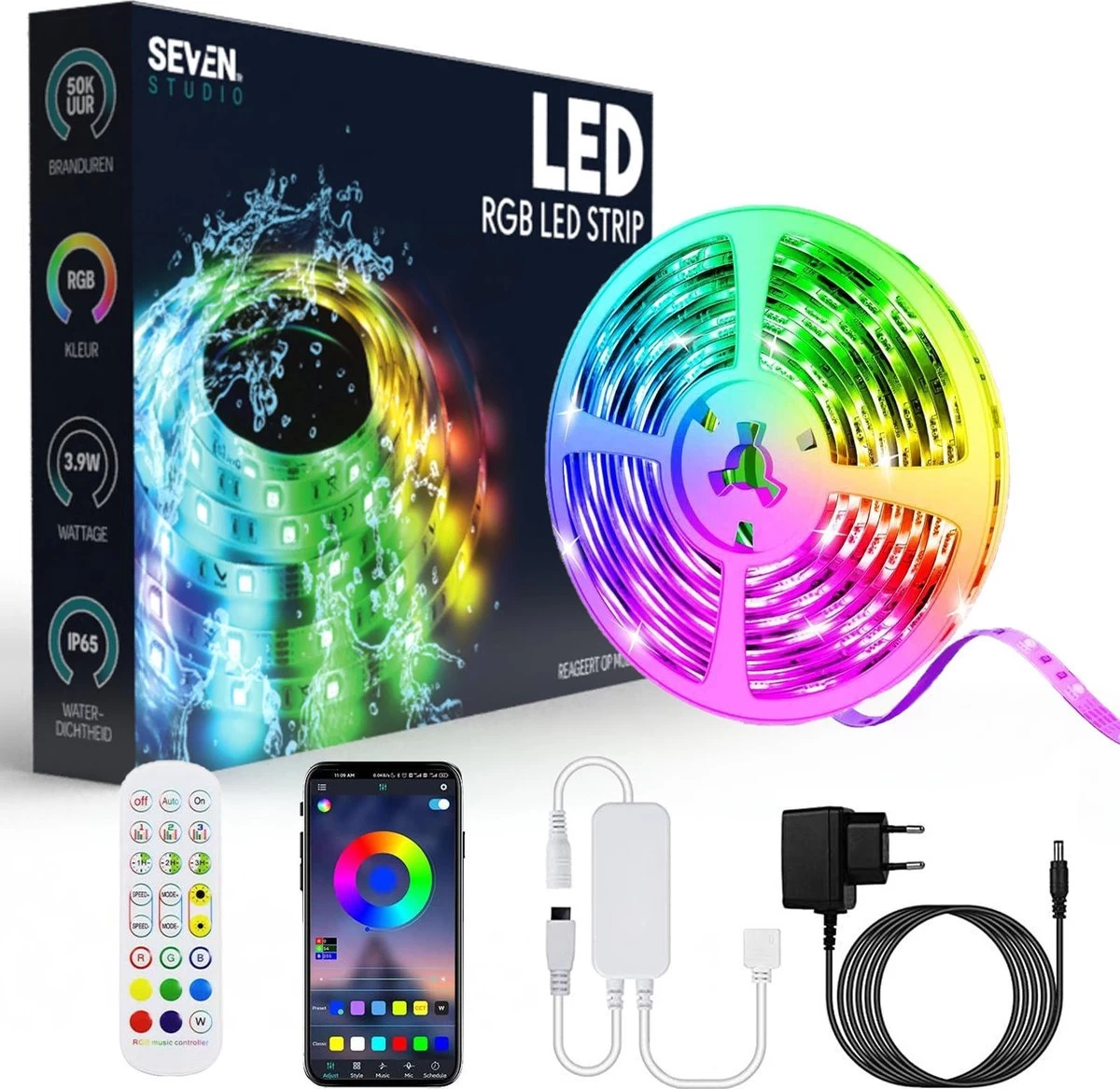 Met deze leuke Seventh Studio LED-strip tover je elke ruimte om tot een sprookjesland. Deze LED-strip is uiterst geschikt voor binnen. De LED-strip is eenvoudig te monteren door de sterke plak rand. De lampje geven RGB en warm wit licht en zijn hierdoor de ideale sfeermaker. De set bevat een 5 meter LED-strip, een afstandsbediening, en adapter. De strip is totaal 5 meter lang.