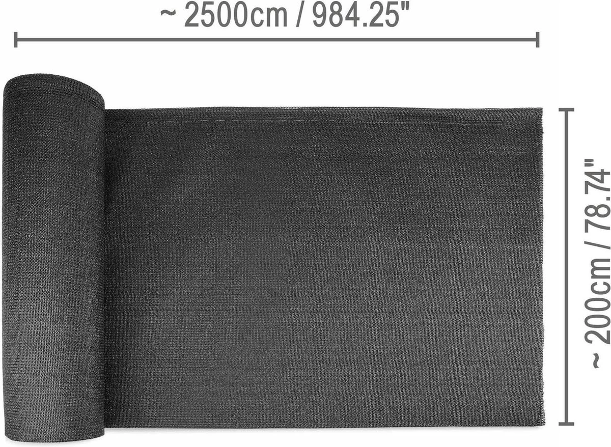 De stof is ademend en laat lucht en vocht door, zodat schimmel geen kans krijgt. Het schaduwdoek biedt een uitstekende UV-bescherming. Schadelijke UV-straling wordt geblokkeerd, waardoor uw tuin en bloembedden worden beschermd. Dit zichtdoek is verkrijgbaar in antraciet of groen, elk met een hoogte van 100, 150 tot 200 cm. Voor de breedte kunt u kiezen tussen 1000cm, 2500cm en 5000cm.