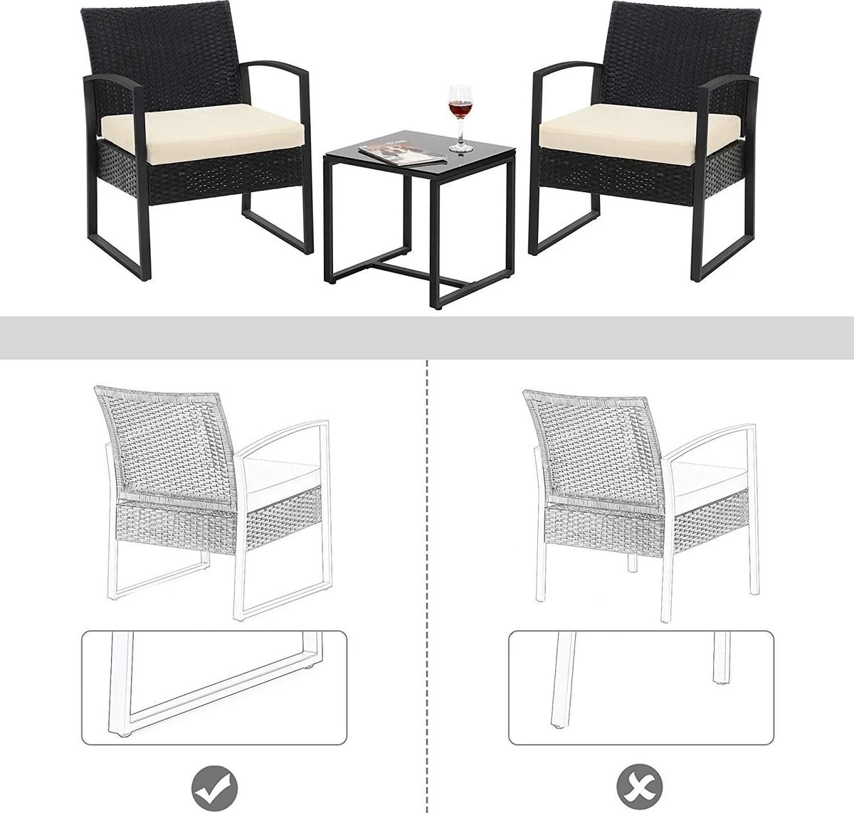 - Tuinmeubelset, 3-delige set, van polyrotan, voor outdoor, terras, balkon, tuin, eenvoudige montage, bijzettafel en 2 stoelen, zwart-beige
