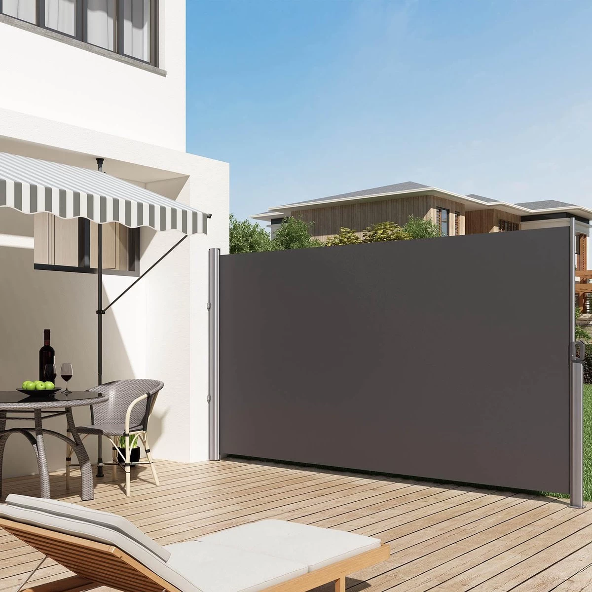 - Terrasoverkapping voor meer bescherming – De zonwering voor terrassen en balkons beschermt u tegen de zon, lichte wind en de ogen van de buren. Ontbijten ongestoord op uw terras. Met kinderslot op de handgreep