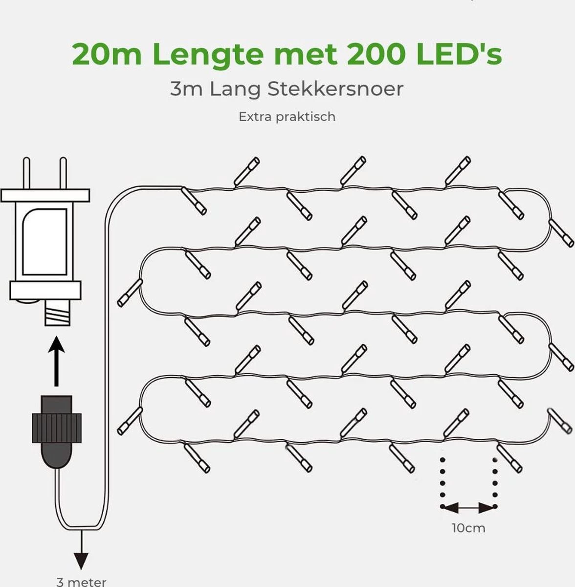 Het lichtsnoer is volledig waterdicht en voorzien van een spatwaterdichte stekker. Dit maakt de versiering geschikt voor binnen en buiten. Maak dus zowel het huis, als de tuin, super gezellig!