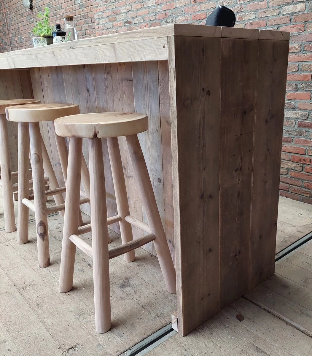 Houten barkrukken ook apart verkrijgbaar voor €129 per stuk op Philline.be