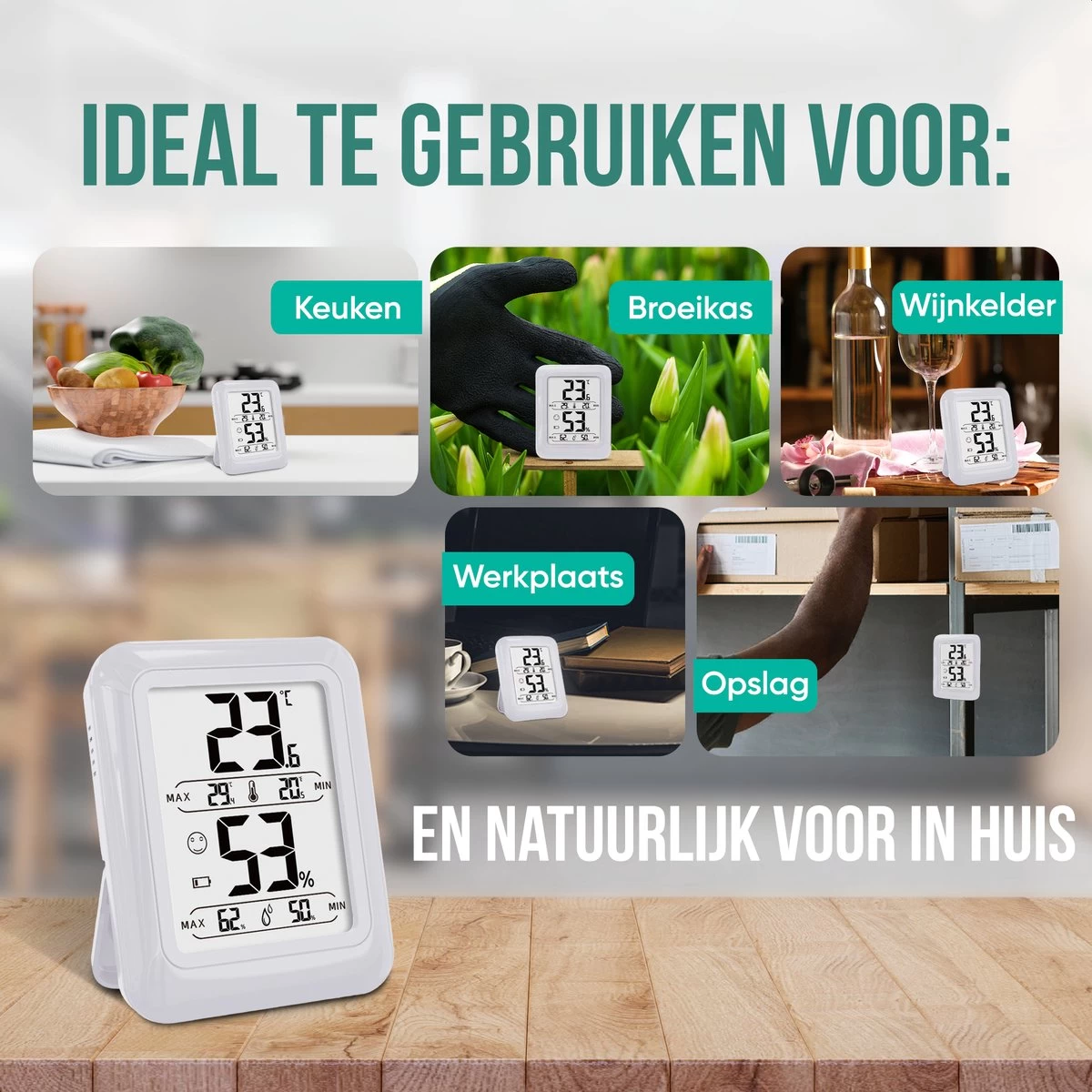 De digitale thermo– en hygrometer van Strex meet nauwkeurig de luchtvochtigheid en kamertemperatuur in huis. Dit kleine maar slimme apparaat geeft in één oogopslag weer of de ruimte te droog, te vochtig, te warm of te koud is. Plaats de thermometer-/hygrometer op een centrale plek in huis en hij doet meteen zijn werk. Kortom de thermometer van Strex zorgt voor een optimale leefomgeving.