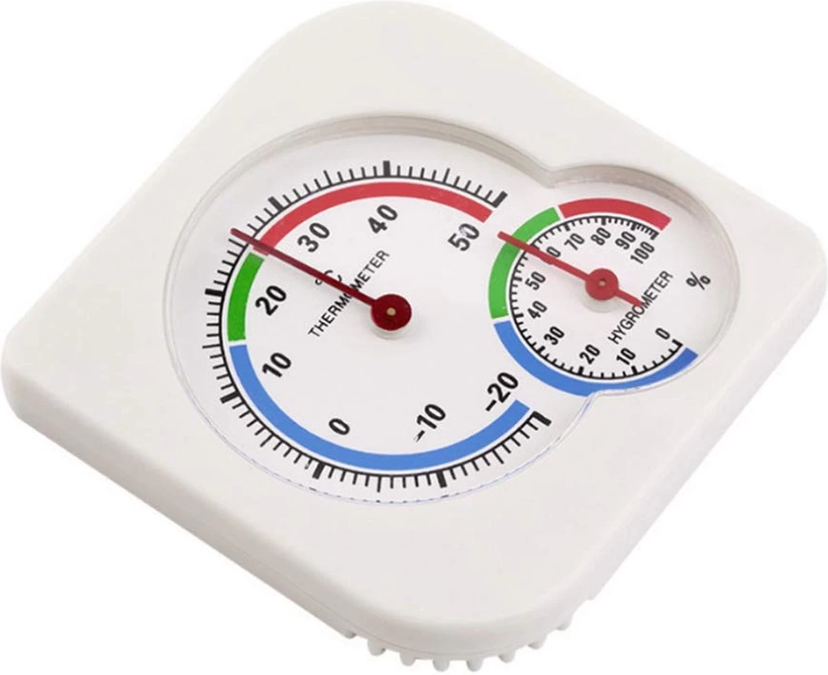 Of dat er geventileerd of bevochtigd moet worden? Met deze wand thermo- en hygrometer van Heble® komt u daar eenvoudig achter.